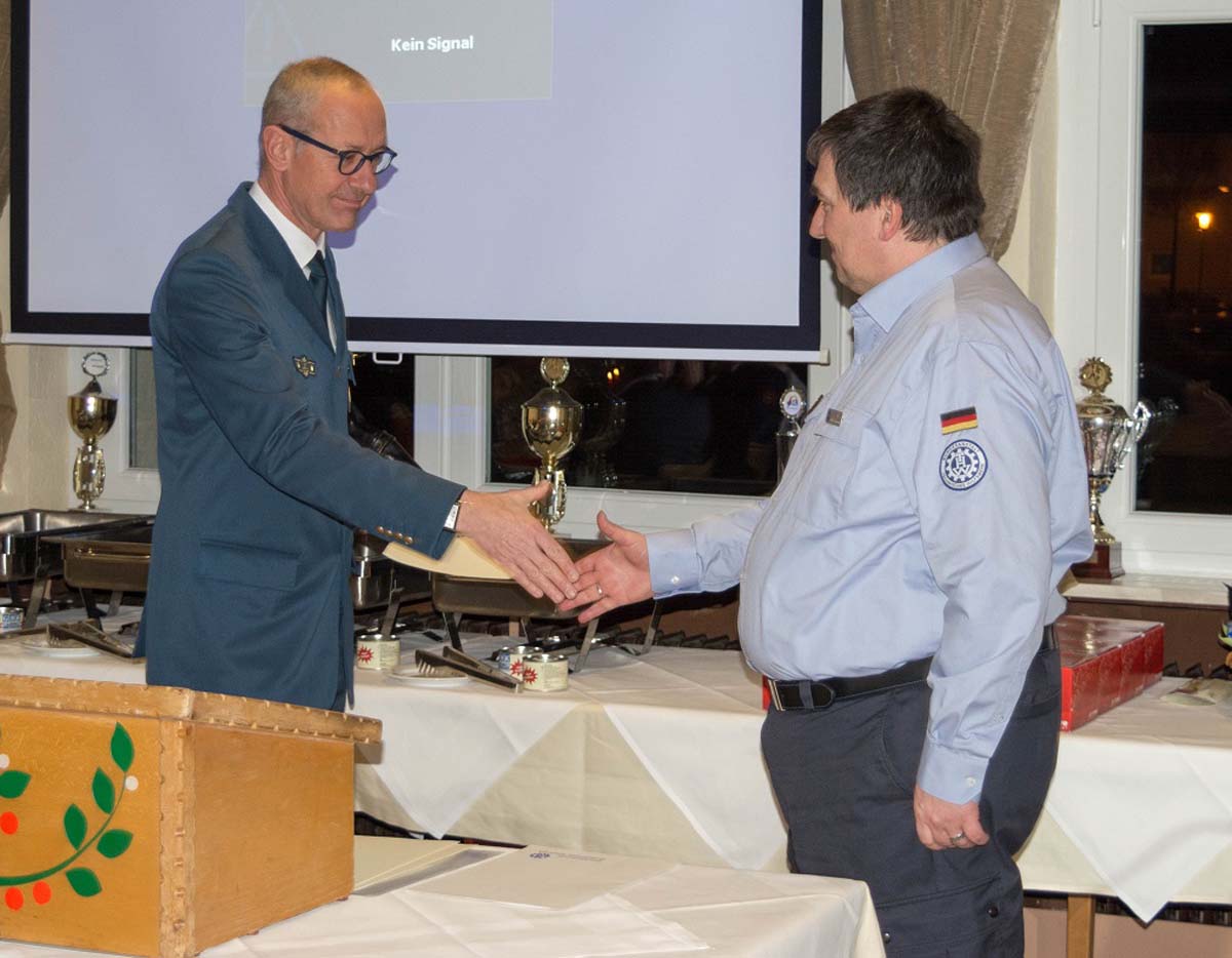 Nach der offiziellen Amtseinführung und Ehrung ging es nahtlos in den Jahresabschluss des Ortsverbands über. Zugführer Benjamin Allgaier blickte zufrieden auf ein sehr erfolgreiches Jahr zurück. „Über 11.000 Dienststunden, davon ca. 40 % Ausbildungsstunden und weit über 1.200 Einsatzstunden zeigen, dass wir ein sehr erfolgreiches aber auch intensives Jahr hinter uns gebracht haben. Die Arbeit hat sich aber gelohnt“, blickt Benjamin Allgaier zurück auf das aktuelle Jahr. „Wenn wir dann noch unsere nächste Weihnachtsfeier in der neuen Fahrzeughalle feiern können, würde es all dem ein Sahnehäubchen aufsetzen“ erzählte er weiter. Auch der örtliche Helferverein nutze die Gelegenheit und ehrte Helfer des Ortsverbands, die im letzten Jahr besondere Dienste für das THW geleistet haben. Lars Hedelt, Tim Illig, Raphael Hofmann, Nico Hefner und Florian Muth erhielt ein kleines Geschenk für ihre Leistung im THW Ortsverband Sinsheim. Die Feuerwehr Sinsheim erhielt als Dank der exzellenten Zusammenarbeit ebenfalls eine kleine Anerkennung. Beim gemütlichen Abendessen wurde die Feier ausklingen lassen.