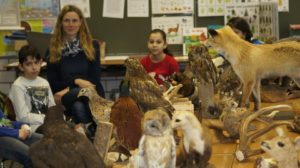 Unsere Lehrerin, Frau Katja Grab, hat die beiden DJV Naturpädagoginnen zum Thema „Tiere im Winter- Lernort Natur“ eingeladen. Sie brachten eine Sammlung lebensnaher Tierpräparate wie Dachs, Fuchs, Hase, Murmeltier und viele andere ausgestopfte Tiere mit. Sehr spannend wurden die Strategien der Tiere erklärt, durch den Winter zu kommen. Toll, dass es an diesem Vormittag -passend zum Thema- so kräftig schneite.