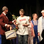 (cr) StattHalle – Stadthalle, amüsant umgesetzt hat das Vokalensemble Sinsheim unter Leitung von Erwin Schaffer die Verabschiedung unserer „geliebten“ Veranstaltungshalle in Sinsheim in die Renovierungs- und Umbauzeit. Da wurden auch schon mal einigige musikalische Klassiker umgetextet. Auch an besonderen Solisten liess es das Vokalensemble Sinsheim nicht fehlen. Viola Schuch glänzte mit ihrem Sopran Solo bei Time to say goodbye. Holger Weitz zeigte seinen allerersten Soloauftritt unplugged nur mit seiner Gitarre. Detlef Krispien spielte ein Trompetensolo und unser Sinsheimer universelles Musikgenie Werner Freiberger zeigte seines ganzes Können am Flügel und überzeugte mit seinem Gesang. Ein weiteres Highlight war Jörg Burgstahler mit seinem Marimbaphon. Durch den Abend führte amüsant und gekonnt Klaus Kaltenbach. Besondere Ehrungen wurden den Hausmeistern der Stadthalle zuteil, sie erhileten zurecht für ihr Engagement mit den Künstlern einen goldenen „Stadthalter“, den Sunnisheimer Award 2015. Zum guten Schluss gab es im Rahmen einer Ausstellung des Kunstkreises Kraichgau noch einen Verabschiedungssekt.