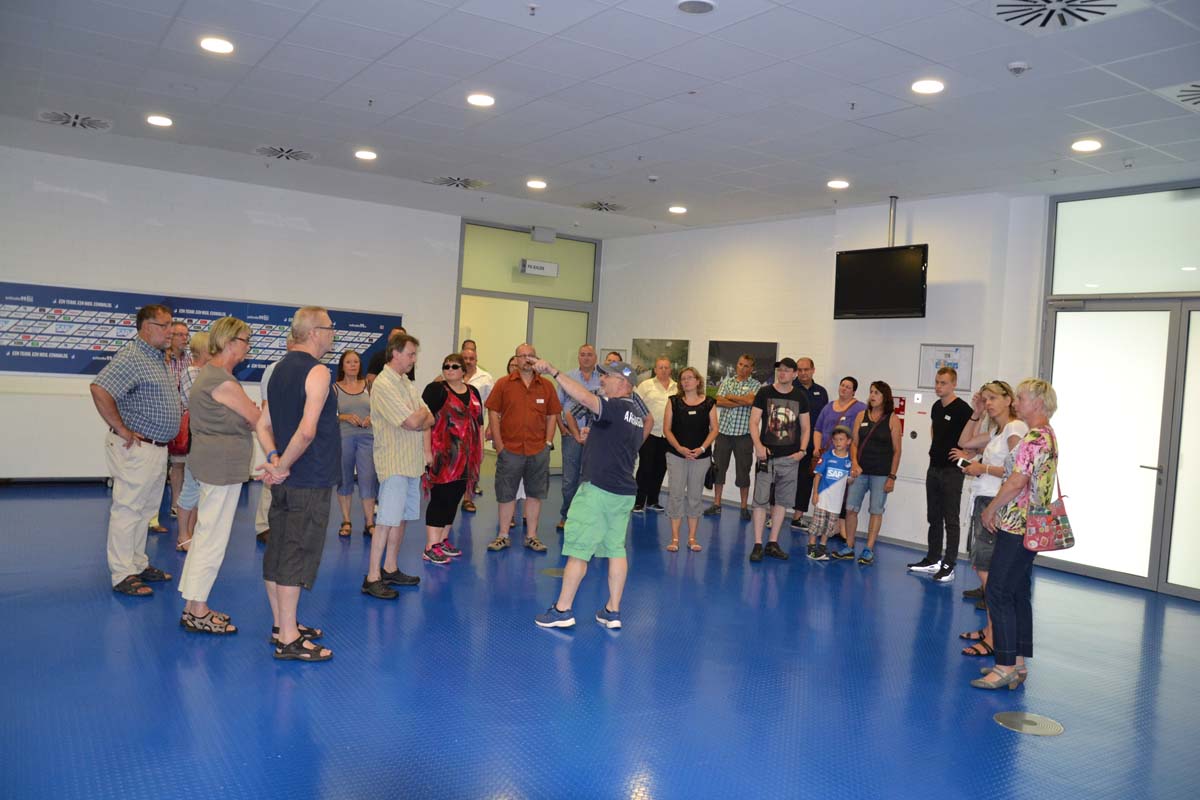 Hotellerie, des Gaststättengewerbes und der Sinsheimer Freizeiteinrichtungen genossen im Rahmen der Veranstaltungsreihe „Die touristischen Leistungsträger stellen sich vor“ eine exklusive Führung durch die „heiligen Hallen“ der TSG 1899 Hoffenheim. Nach einer kurzen Begrüßung durch Sandra Aisenpreis, Amtsleiterin für Wirtschaftsförderung und Tourismus bei der Stadt Sinsheim und Kristian Baumgärtner von 1899 Hoffenheim im Fanhaus wurden die Besucher in zwei Gruppen durch die Wirsol Arena geführt. Die beiden Arena Guides erklärten fachkundig und sehr kurzweilig, wie es bei Heimspielen in der Arena zugeht. Es wurden Einblicke in den Presseraum, die Umkleidekabine der Mannschaft, den VIP-Bereich und die Logen gewährt. Natürlich durfte auch das Herzstück der Arena – das Spielfeld – begutachtet werden. So erfuhr man beispielsweise den Kreislauf der Bewässerung oder dass der Rasen dank speziell eingearbeiteter Kunststoffwolle so gleichmäßig und dicht wächst.