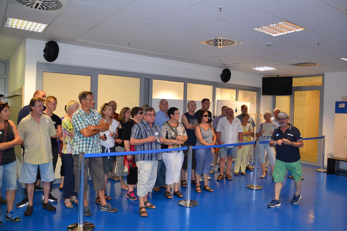 Anschließend ging es in das Trainingszentrum nach Zuzenhausen zum nächsten Höhepunkt des Abends, dem Footbonaut. Lediglich drei Mal weltweit gibt es dieses technische Wunderwerk, welches die Reaktionsfähigkeit und Treffsicherheit der Spieler verbessern soll, indem sie schnell und präzise auf die Ballschussmaschinen reagieren müssen. Der ein oder andere Fußballbegeisterte nutzte die Gelegenheit direkt und stieg in das 14 mal 14 Meter große Feld-Quadrat und versuchte, die von der heranschnellenden Bälle in die entsprechend aufleuchtenden Zielfelder zu schießen.
