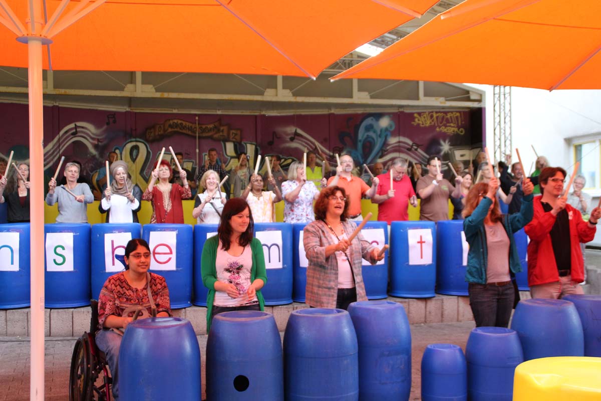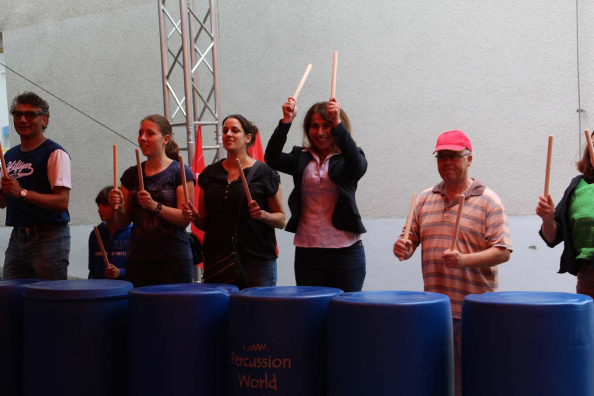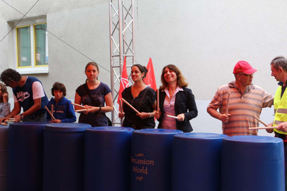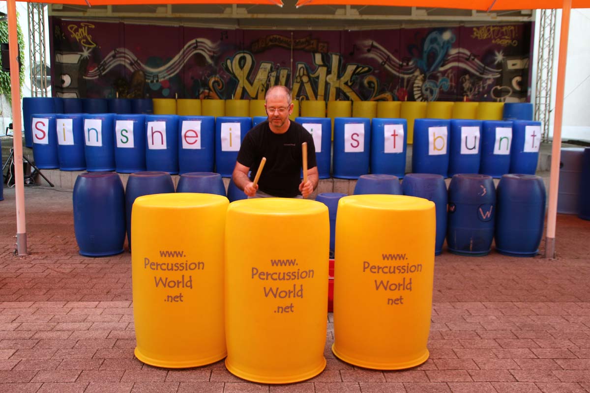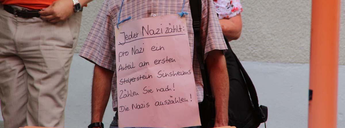 (cr) Ein einzigartiges Trommelfeuer ertönte durch Sinsheim aus 60 Trommeln in der Allee und machten Front gegen den langweiligen unerwünschten Aufmarsch der rechten Szene in Sinsheim. Dabei kann man von einem Aufmarsch oder einer Demo der Rechten gar nicht reden, denn die mussten zur Mittagszeit erstmal noch telefonieren um knapp 25 Leute mehr aus der Ferne als aus der nahen Gegend zusammen zu bekommen. Doch die Sinsheimer verschwendeten keine Zeit mit den menschenverachtenden Parolen dieser „demokratischen“ Randgruppierung, sondern trommelten sich unter fachkundiger Anleitung ihre Antwort. Sinsheim ist und bleibt bunt und ein Ort an dem sich jeder wohlfühlen soll, egal ob jung oder alt, arm order reich und stehen auch hinter den Menschen denen zur Zeit ein Leben in ihrem eigenen Land nicht möglich ist. Diese Botschaft war an diesem Tag nicht zu überhören. Ein Trost dieser Demo bleibt, denn die Anwesenheit dieser Rechten ermöglichten einen Spendenaufruf, „pro Nazi einen Anteil“ für einen Stolperstein einer tollen Aktion zur Erinnerung an die Opfer der NS Zeit. Bereits nach kurzer Zeit war diese Aktion völlig überzeichnet.