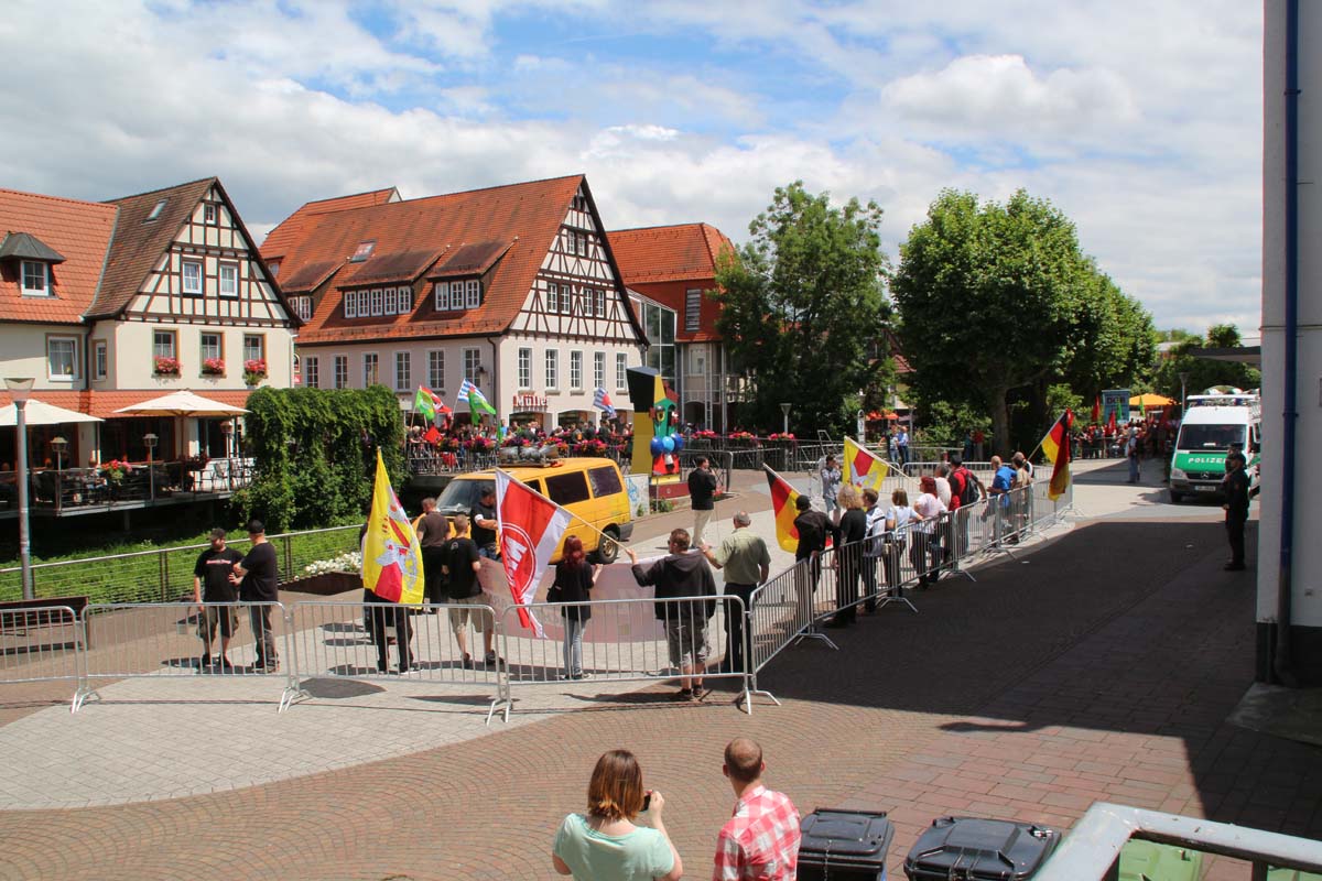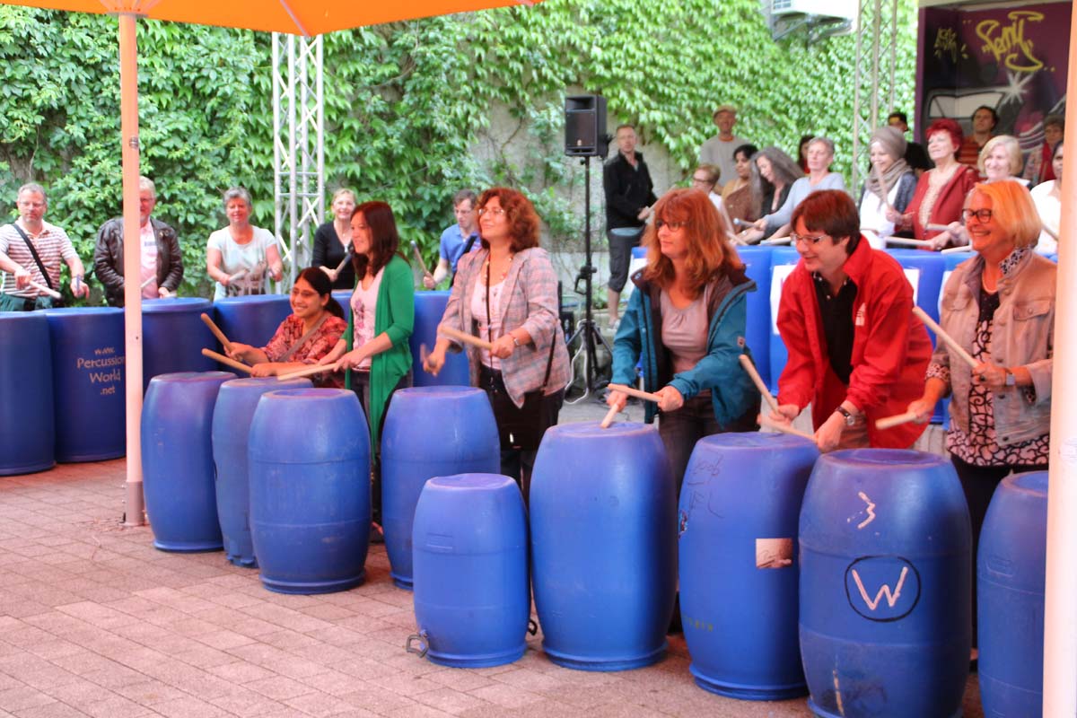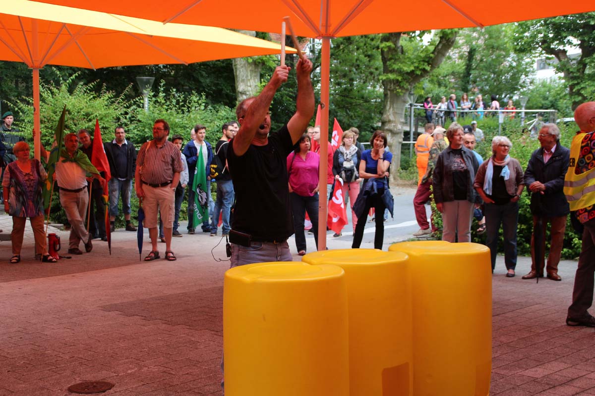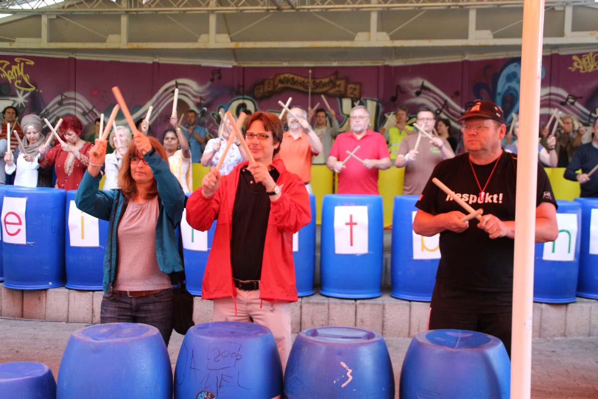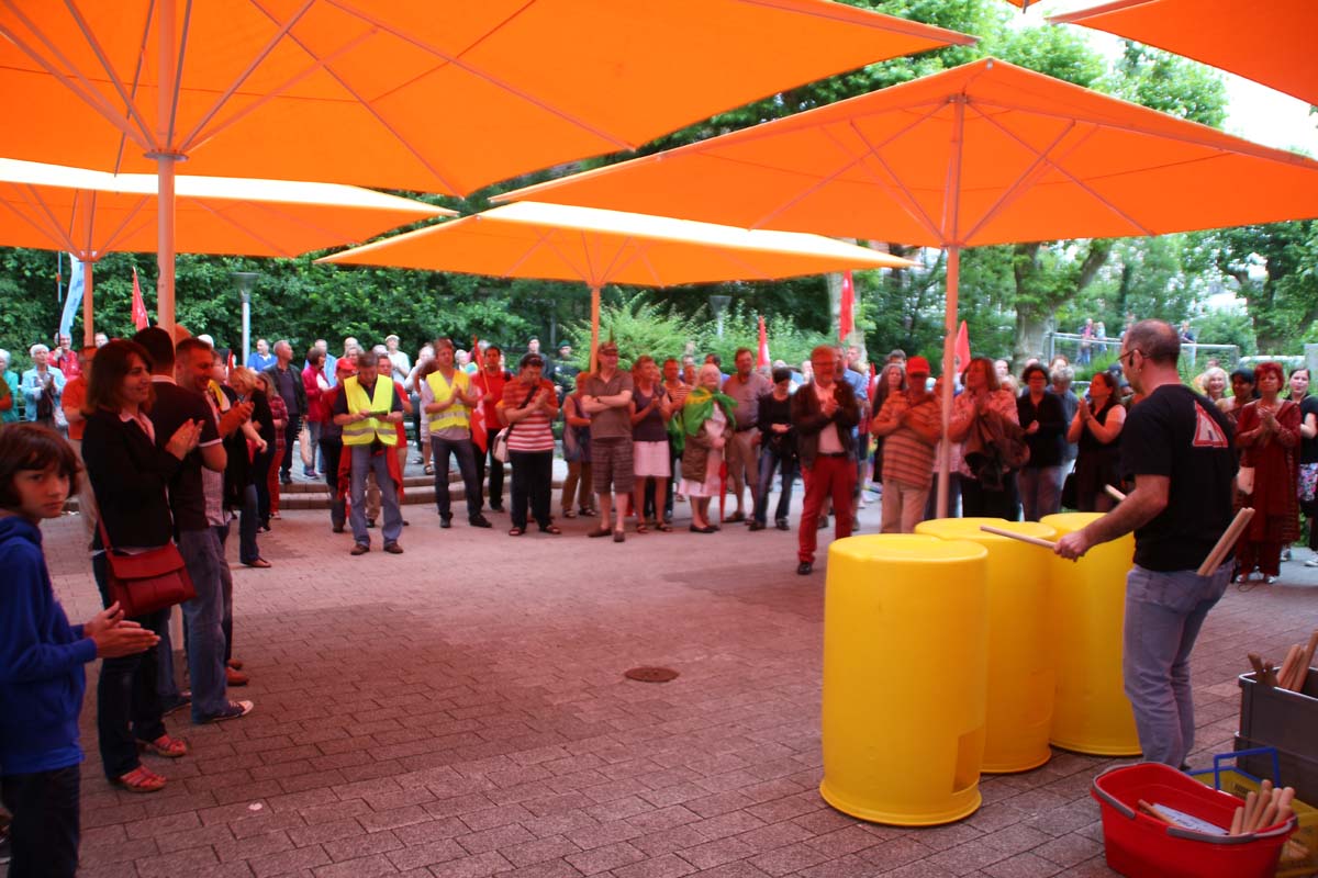 (cr) Ein einzigartiges Trommelfeuer ertönte durch Sinsheim aus 60 Trommeln in der Allee und machten Front gegen den langweiligen unerwünschten Aufmarsch der rechten Szene in Sinsheim. Dabei kann man von einem Aufmarsch oder einer Demo der Rechten gar nicht reden, denn die mussten zur Mittagszeit erstmal noch telefonieren um knapp 25 Leute mehr aus der Ferne als aus der nahen Gegend zusammen zu bekommen. Doch die Sinsheimer verschwendeten keine Zeit mit den menschenverachtenden Parolen dieser „demokratischen“ Randgruppierung, sondern trommelten sich unter fachkundiger Anleitung ihre Antwort. Sinsheim ist und bleibt bunt und ein Ort an dem sich jeder wohlfühlen soll, egal ob jung oder alt, arm order reich und stehen auch hinter den Menschen denen zur Zeit ein Leben in ihrem eigenen Land nicht möglich ist. Diese Botschaft war an diesem Tag nicht zu überhören. Ein Trost dieser Demo bleibt, denn die Anwesenheit dieser Rechten ermöglichten einen Spendenaufruf, „pro Nazi einen Anteil“ für einen Stolperstein einer tollen Aktion zur Erinnerung an die Opfer der NS Zeit. Bereits nach kurzer Zeit war diese Aktion völlig überzeichnet.