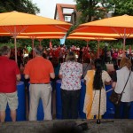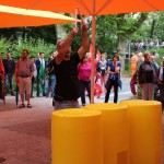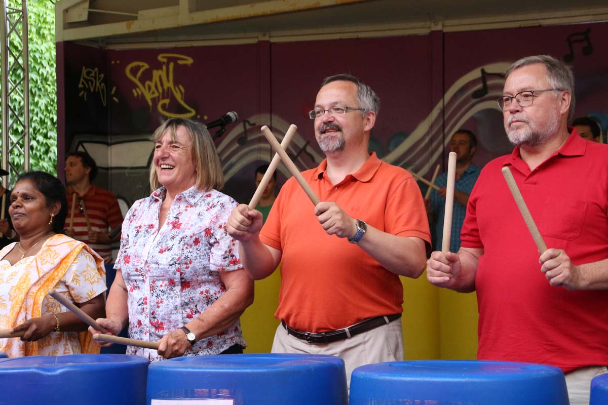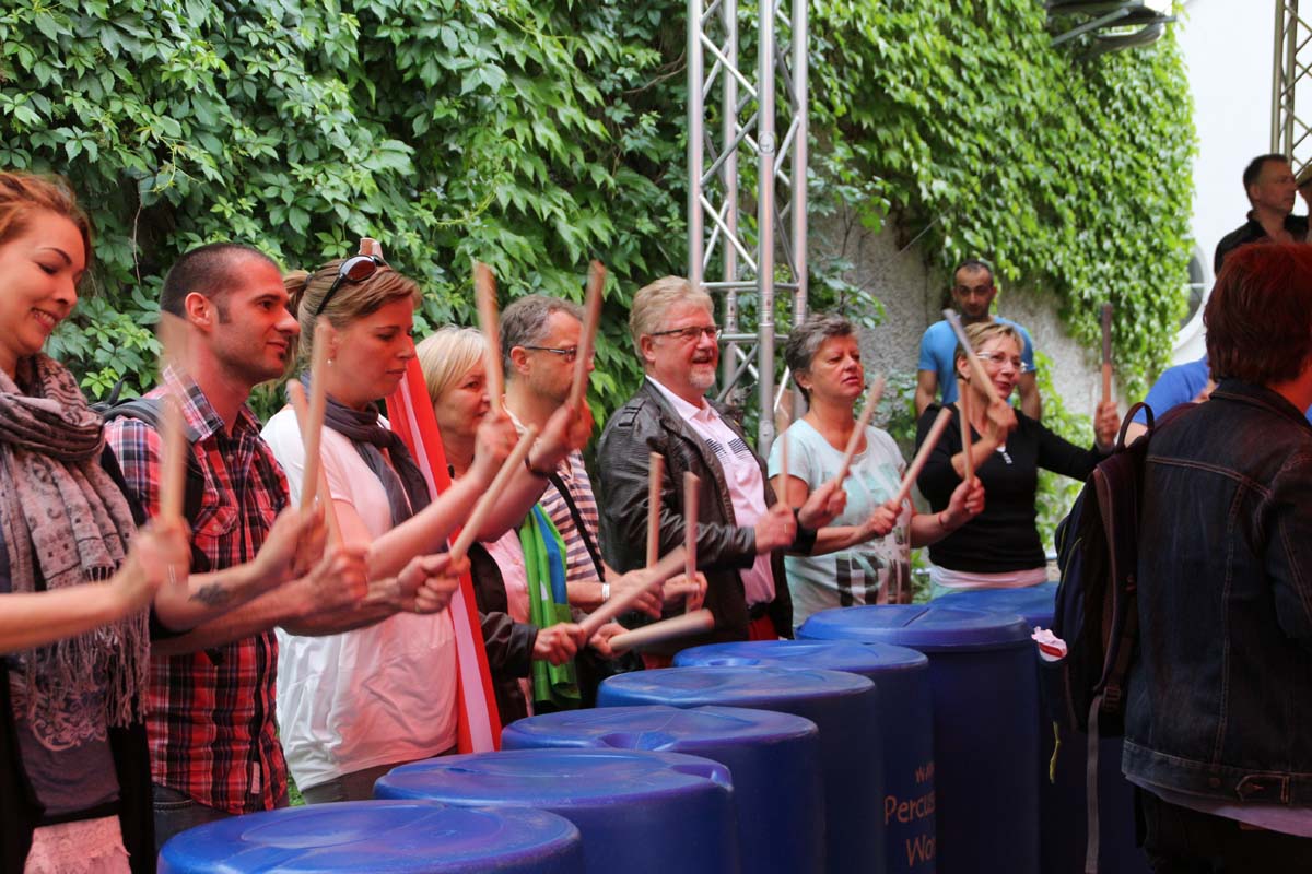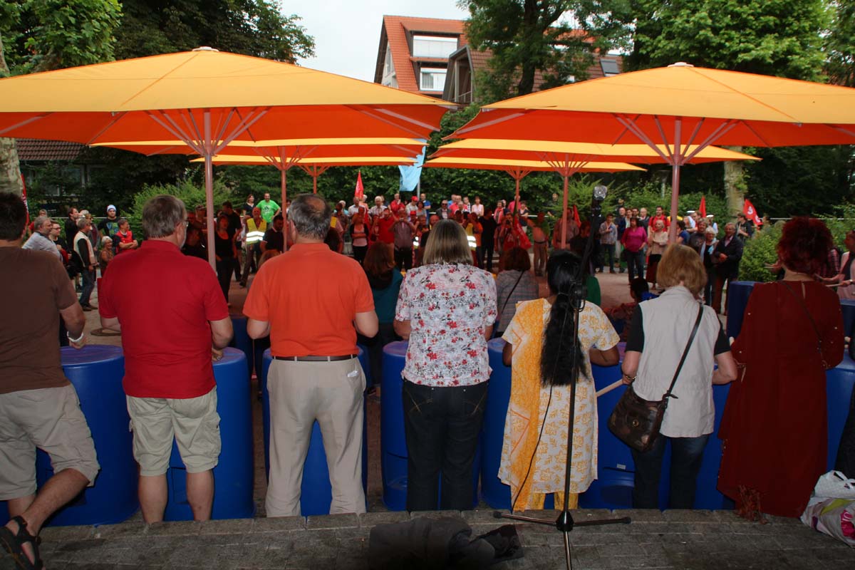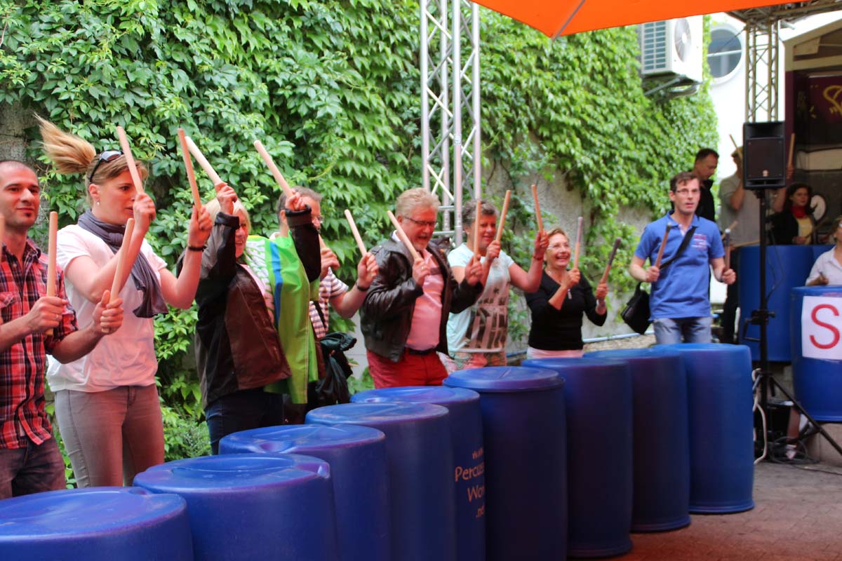 (cr) Ein einzigartiges Trommelfeuer ertönte durch Sinsheim aus 60 Trommeln in der Allee und machten Front gegen den langweiligen unerwünschten Aufmarsch der rechten Szene in Sinsheim. Dabei kann man von einem Aufmarsch oder einer Demo der Rechten gar nicht reden, denn die mussten zur Mittagszeit erstmal noch telefonieren um knapp 25 Leute mehr aus der Ferne als aus der nahen Gegend zusammen zu bekommen. Doch die Sinsheimer verschwendeten keine Zeit mit den menschenverachtenden Parolen dieser „demokratischen“ Randgruppierung, sondern trommelten sich unter fachkundiger Anleitung ihre Antwort. Sinsheim ist und bleibt bunt und ein Ort an dem sich jeder wohlfühlen soll, egal ob jung oder alt, arm order reich und stehen auch hinter den Menschen denen zur Zeit ein Leben in ihrem eigenen Land nicht möglich ist. Diese Botschaft war an diesem Tag nicht zu überhören. Ein Trost dieser Demo bleibt, denn die Anwesenheit dieser Rechten ermöglichten einen Spendenaufruf, „pro Nazi einen Anteil“ für einen Stolperstein einer tollen Aktion zur Erinnerung an die Opfer der NS Zeit. Bereits nach kurzer Zeit war diese Aktion völlig überzeichnet.