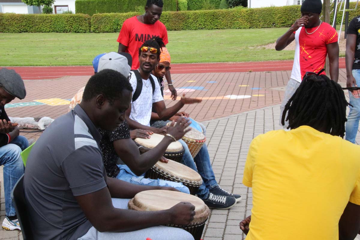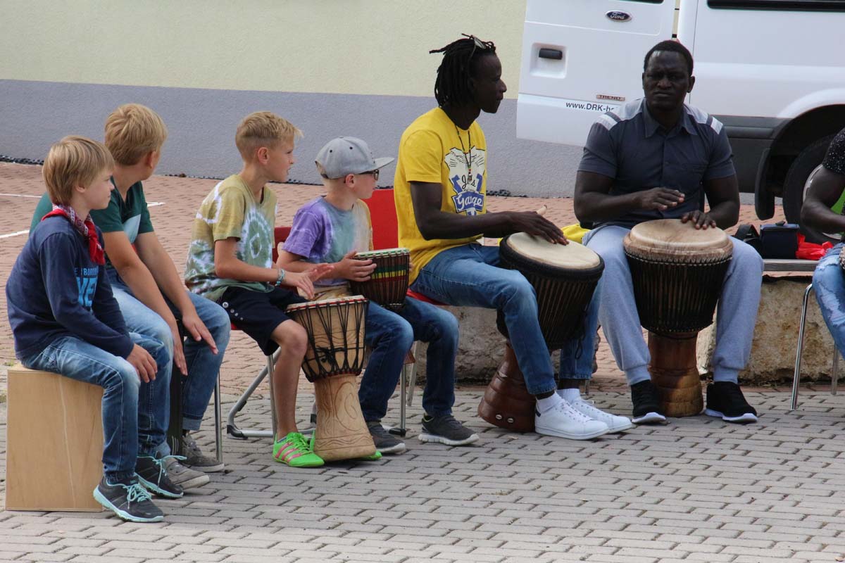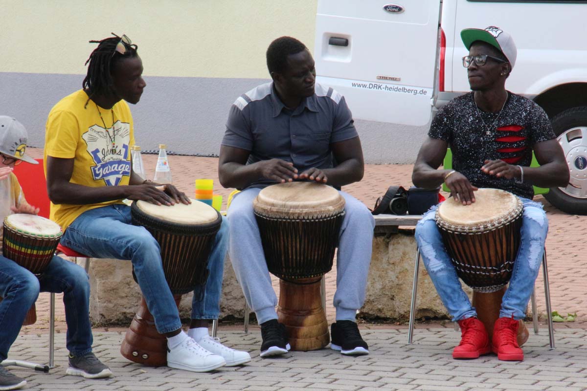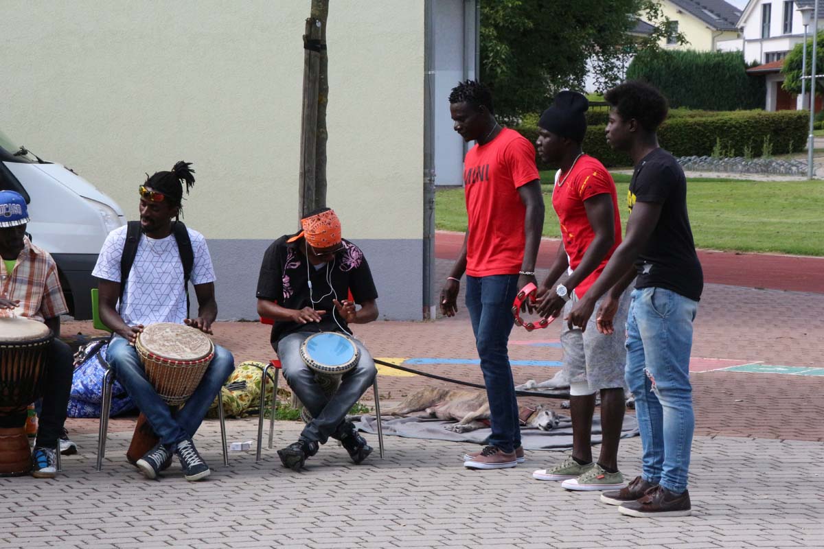 (cr) Eine Flüchtlingsgruppe aus Gambia und Kinder aus Hilsbach und Weiler trommelten bei einem gemeinsamen Trommelworkshop in der Grundschule Hilsbach Weiler. Spass hatten hier beide Seiten ohne Vorurteile und Berührungsängste. Die Afrikaner gaben gerne etwas von ihrer Kultur und Musik an die Kinder weiter. Die Musik und der Spass am trommeln überwand auch jede Sprachbarriere. Ein gutes Beispiel für ein friedliches Miteinander, hier könnten sich einige Erwachsene eine grosse Scheibe davon abschneiden.