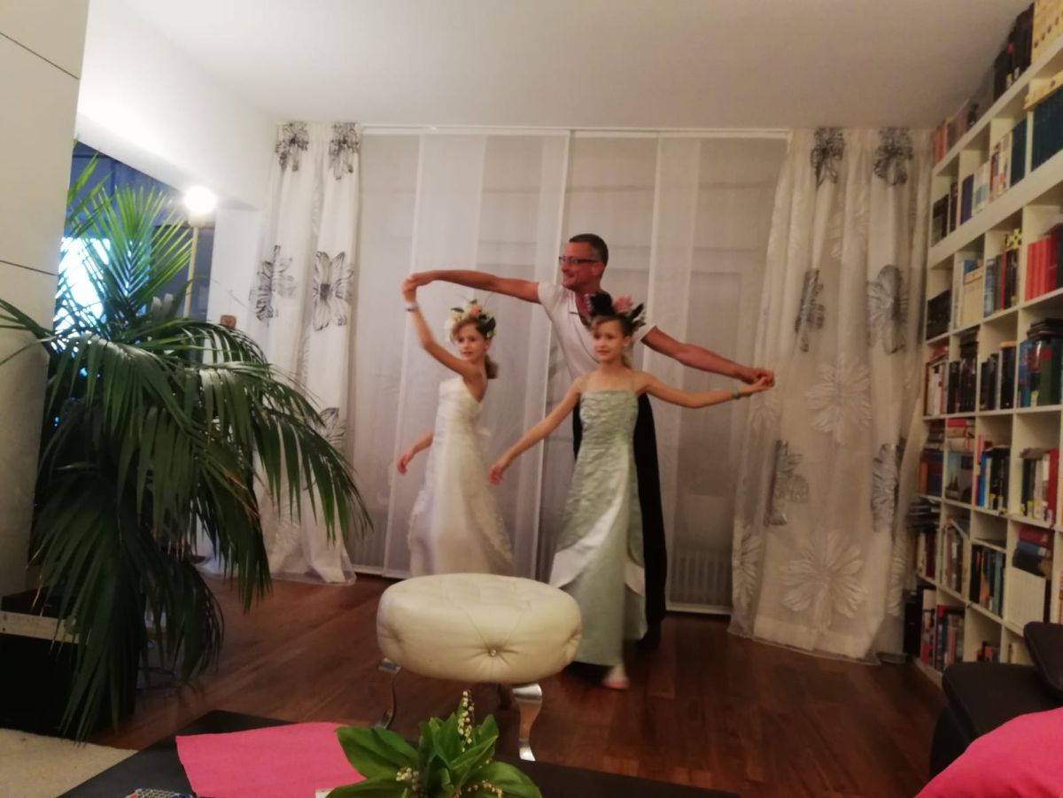 Patrick Zimmermann trainierte die Turniertanzgruppen Standard des TSC Rot-Gold Sinsheim wöchentlich online von zu Hause aus.Hier wurden im Rahmen der Möglichkeiten Haltung, kleinere Schrittfolgen, Charakteristika des Turniertanzens uvm. trainiert. Kreative Unterstützung erhielt er hierbei von seinen 9-jährigen Töchtern Isabell und Sophie, die in kleinen Theaterstückchen verpackt zu Beginn des Trainings das Thema der Stunde vorstellten. Auch die älteren Töchter Marie und Julia unterstützen den Papa mit Fotos oder gemalten Skizzen zur Verdeutlichung der Trainingsinhalte. Zusätzlich lud Patrick Zimmermann jeden Montag zu einem Tänzer-Fitnesstraining ein, bei dem zeitweise bis zu 45 Paaren aus verschiedenen Tanzgruppen und -kreisen teilnahmen. Ein weiteres Online Training fand monatlich für die „Leistungsgruppe Standard“, eine ergänzende Gruppe des TSC Rot-Gold für Standard-Turnierpaare, mit Tasja Schulz-Novoselov und Anatoliy Novoselov statt. Hier wurden den Paaren u.a. Informationen über einzelne Figuren vermittelt. Die Turniergruppe Latein hatte wöchentlich Gelegenheit, ein Online Training mit Anton Ganopolsky und seiner Frau Natalya zu nutzen. Wichtig war dem Verein, gerade auch für die Kinder und Jugendlichen Training anzubieten. Die Trainerinnen Kristina Roth und Verena Gentze übten mit ihren HipHop Gruppen alte und neue Choreographien online weiter, ebenso wurde die HipHop Elite-Gruppe des TSC Rot-Gold von der Trainerin Lisa Beuttler online trainiert.Auch die Hobby-Tanzkreise hatten weiterhin Gelegenheit, ihr tänzerisches Wissen zu üben und zu erweitern. Sabrina Ebser verschickte regelmäßig Online Videos an ihre Gruppen und auch Michael Schäfer schickte u.a. eine ChaCha Folge über WhatsApp an seinen Tanzkreis.