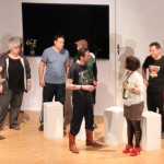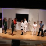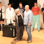IMG_0143(cr) Vollbesetzte Aufführungen waren der Lohn des diesjährigen Theaterstückes “ Einer flog übers Kuckucksnest“ des Lehrertheater-Ensembles des Wilhelmi Gymnasiums im Musiksaal der Schule. Hier zeigten sie ihre zweite Berufung. Glänzend agierten die Lehrer als Schauspieler in diesem Stück. Dies wollten viele Theaterfreunde und Schüler nicht verpassen. Die Rollen waren alle blendend besetzt. Unter der Regie von Uta Kissenbeck agierten Gregor Gund, Dirk Mehlich, Tobias Wieland, Anne Schmehling, Jutta Stier, Axinja Roß, Karsten Grünberg, Johannes Senger-Bastian, Gudrun König, Michael Riedlberger, Renate Ehret, Sabine Zimmermann und Sigrid Koenemund. Ein besonderer Dank ging an Andy Münkel den guten Geist und immer zur Stelle wenn man ihn braucht. Das Stück ist hinreichend bekannt aus dem Kino mit Jack Nicholson in der Hauptrolle. Doch dieses Theaterensemble setzte dieses Stück von Dale Wasserman nach dem gleichnamigen Roman von Ken Kesey glänzend um und konnte dem Vergleich mit dem Film locker standhalten. Von uns Daumen hoch für einen absolut gelungenen Theaterabend.