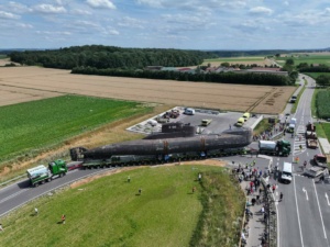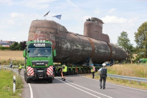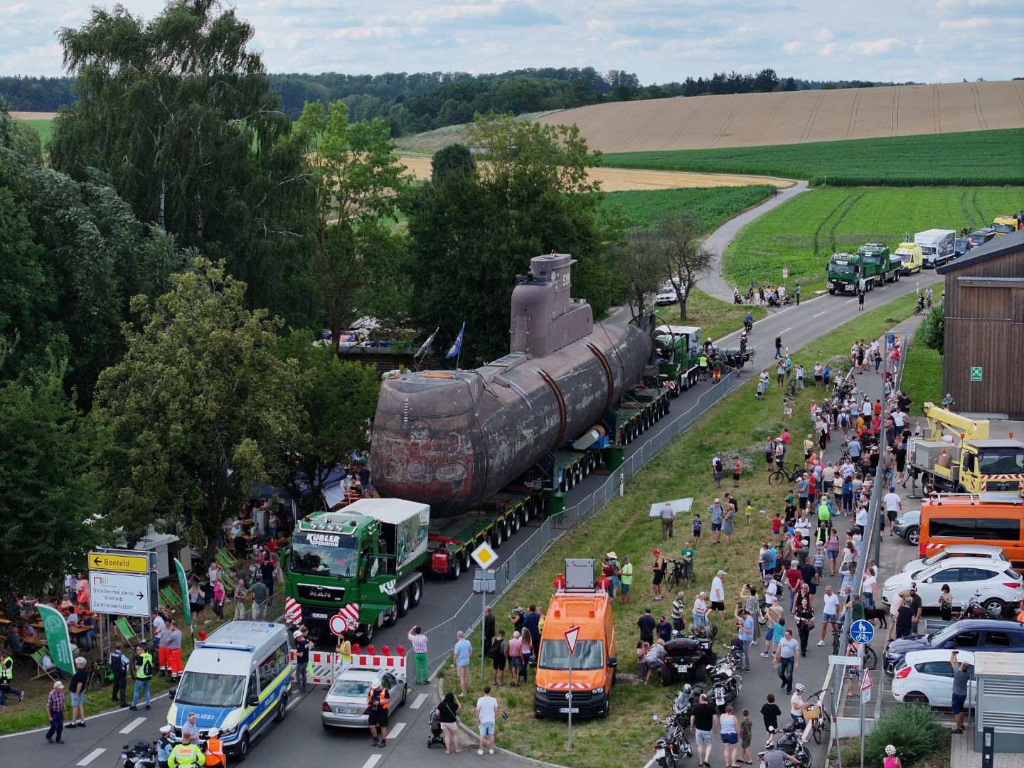 Die Strecke von Bad Rappenau zur Straßenmeisterei Bonfeld war die kürzeste Tagesetappe, die das U-Boot auf dem 30-achsigen Tieflader bisher auf seinem Weg ins Technik Museum Sinsheim zurücklegen musste.