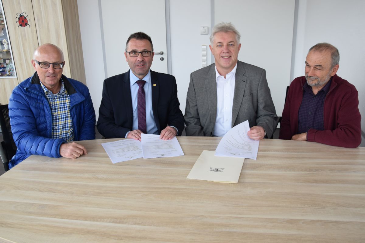 Klaus Lauer, Ansprechpartner beim Zweckverband für Verwaltung und Förderung, und Jochen Ausäderer, Technischer Leiter, haben die Einzelförderbescheide persönlich an Oberbürgermeister Jörg Albrecht übergeben. Er dankte Lauer und Ausäderer für die Zusammenarbeit und Unterstützung bei der Beantragung der Fördermittel für den innerörtlichen Breitbandausbau. Es fließen 48.000 Euro nach Adersbach, 61.880 Euro nach Ehrstädt und 91.200 Euro nach Hasselbach. Die Beträge berücksichtigen die örtlichen Streckenlängen, die für die Breitbandverkabelung erforderlich sind. „Die Ortsvorsteher haben in Adersbach, Ehrstädt und Hasselbach hervorragende Arbeit geleistet und die Bürger zum Abschluss der Verträge und damit zu einer hohen Anschlussquote bewogen“, lobte OB Albrecht. Auch betonte er, dass die Stadt Sinsheim an der Zusammenarbeit mit dem Zweckverband festhält und nicht auf private Investoren setzen wird. „Damit bieten wir unseren Bürgern Nachhaltigkeit und Verlässlichkeit“, stellte Oberbürgermeister Albrecht fest.