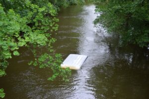Eigenen Angeben zufolge schreckte er wenig später durch Einsatzfahrzeuge auf und suchte vergebens nach seinem Fahrzeug. Aus unbekannten Gründen hatte sich die Bremse gelöst, der Wagen rollte eine Böschung hinunter, schoss über einen Fußweg und landete im Salinenkanal. Dort trieb der Transporter noch hundert Meter weiter ehe er bis zum Dach versunken im Salinenkanal stand.
