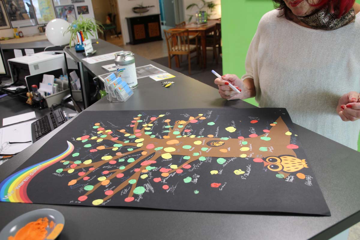 (cr) Wir gratulieren. Ulli Kimpel vom Therapiezentrum am Museum hat es heute morgen pünktlich um 10.00 Uhr geschafft, er ist inoffizieller Weltmeister im Dauermassieren. 143 Patienten in 25 Stunden und das alles für einen guten Zweck, denn der Erlös geht an Kinder unterm Regenbogen. Jeder Patient spendete 10 Euro für 10 Minuten massieren. Doch mancher gab auch gerne mehr für diese tolle Aktion und so kamen 1725 € für diesen guten Zweck zusammen. Als Erinnerung bleibt der Spendenbaum auf dem sich jeder Patient mit einem farbigen Fingerabdruck und Namen verewigen konnte.