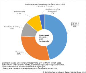 Das Klimaschutzgesetz Baden-Württembergs sieht eine Reduktion der Treibhausgas (THG)-Emissionen um mindestens 25 % bis 2020 und um 90 % bis 2050 bezogen auf 1990 vor. Auch das in Österreich im Jahr 2011 beschlossene und zuletzt 2017 geänderte Klimaschutzgesetz setzt Emissionshöchstmengen fest1.