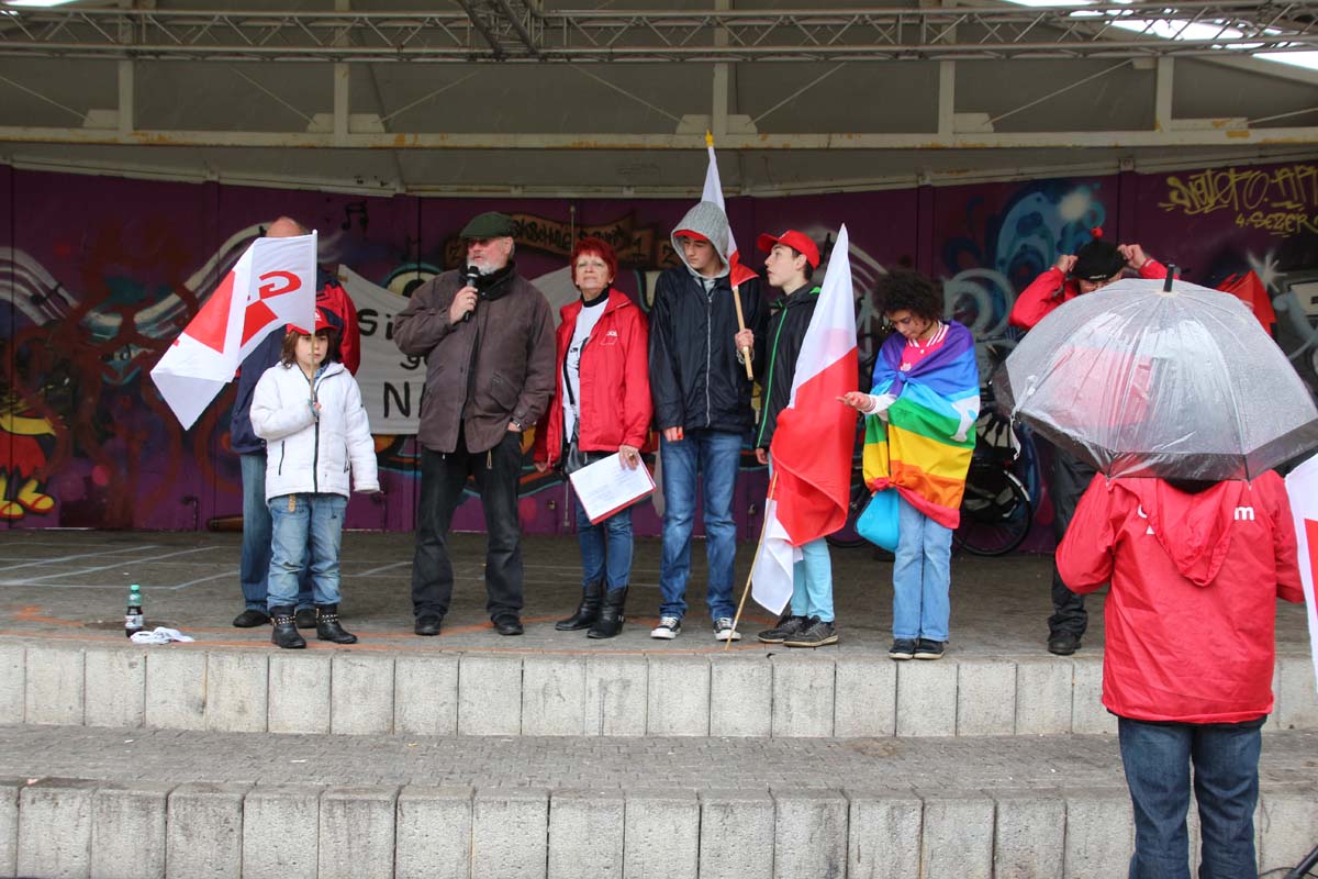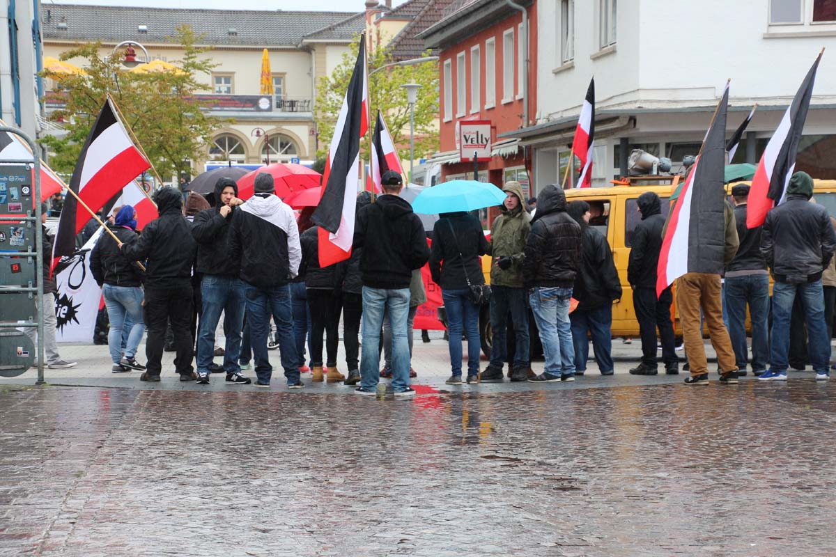 (zg) Am Samstag Nachmittag, 23. April, haben erneut rund 30 Neonazis Sinsheim drei Stunden mit ihren rechten, menschenfeindlichen Parolen heimgesucht. Als Redner angekündigt waren unter anderem zwei wegen Volksverhetzung und Aufstachelung zum Rassenhass Vorbestrafte. Überraschend und zur Verwunderung Vieler konnten die Nazis, begleitet von einem enormen Polizeiaufgebot, eine Demonstration vom Wächter durch die Innenstadt zur Theodor-Heuss-Schule und zurück durchführen.