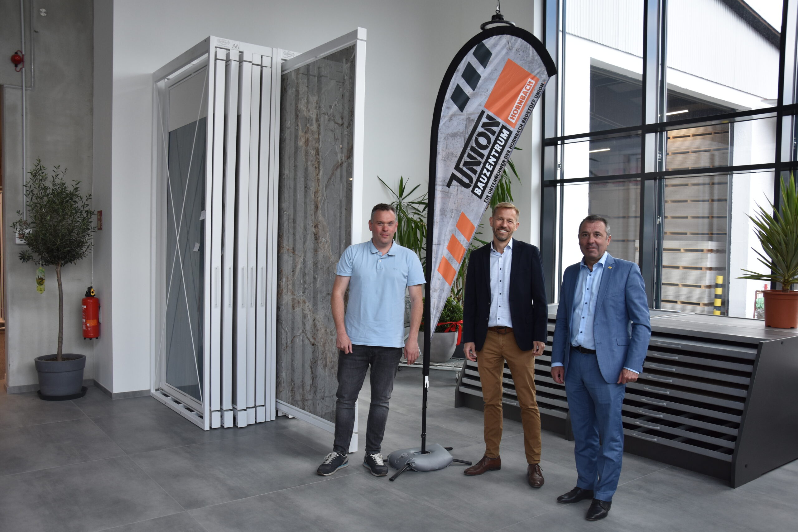 „Wir sind beeindruckt von dem neuen gestalteten Empfangsbereich, den neuen Büros und Ausstellungsräumlichkeiten,“ so Oberbürgermeister Jörg Albrecht. Am 1. Oktober 2020 wurde eine neue Niederlassung von Union Bauzentrum Hornbach in den ehemaligen Räumlichkeiten des Bauzentrums Schneiders eröffnet. Die Mitarbeiter wurden übernommen und so konnte die bewährte Kompetenz unter neuer Flagge weitergeführt und ausgebaut werden. Geschäftsführer Robert Kautzmann und Niederlassungsleiter Jochen Deck stellten die neuen Räumlichkeiten vor. Eine große Auswahl an Fliesen, Türen und Bauelementen sind dort nun zu sehen.