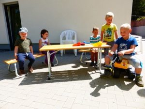 (zg) Nachdem die Kinder aus dem Kindergarten „Am Krebsbach“ in Untergimpern mit der Aufführung des Hexen-Musicals Geld verdient haben, konnten wir dies jetzt auch in eine neue Gartengarnitur investieren. Und gerade noch rechtzeitig ist sie dann vor den Sommerferien geliefert worden und kann so noch die letzten paar Tage genutzt werden. Sie sieht toll aus, ist sehr stabil und wird unsere Kinder hoffentlich viele Jahre begleiten. Einen Sitzbagger und ein paar neue Schaufeln haben wir auch noch dazu bekommen.