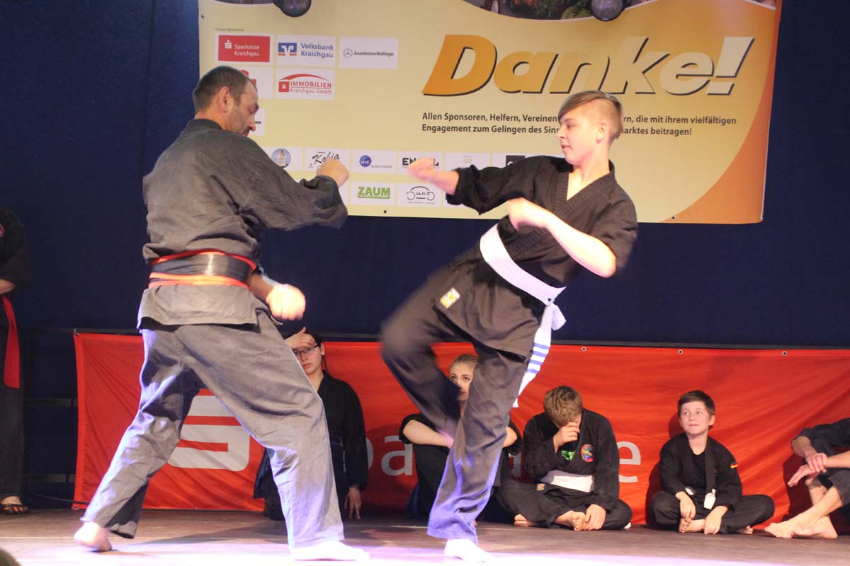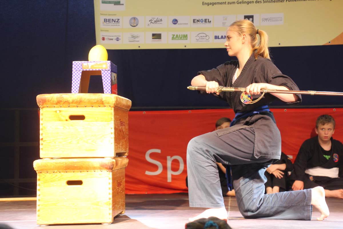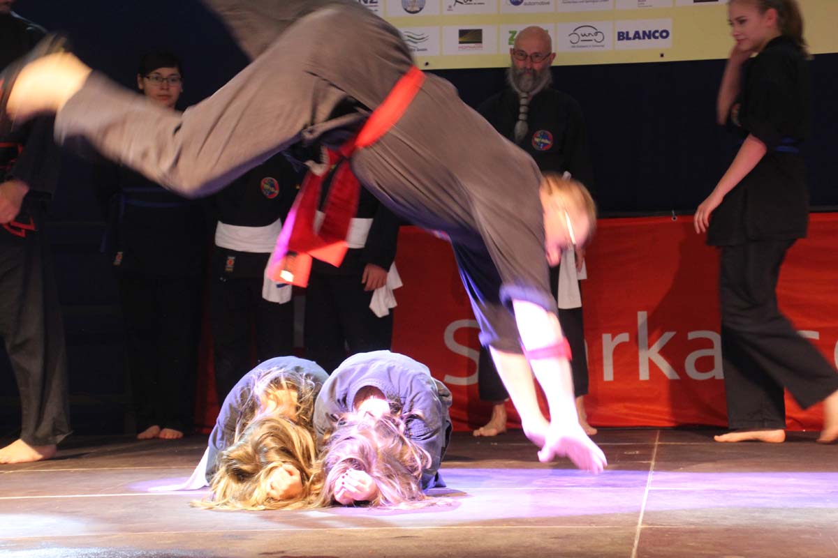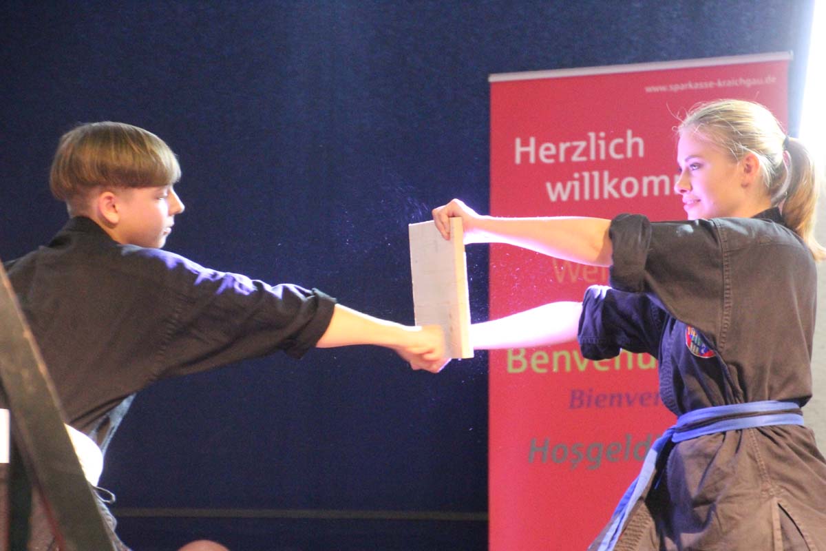 (cr) Viet vo Dao begeistert das Publikum in der Elsenzhalle mit einer unterhaltsamen Vorführung. Disziplin und Konzentration sind der Schlüssel zum Erfolg.
