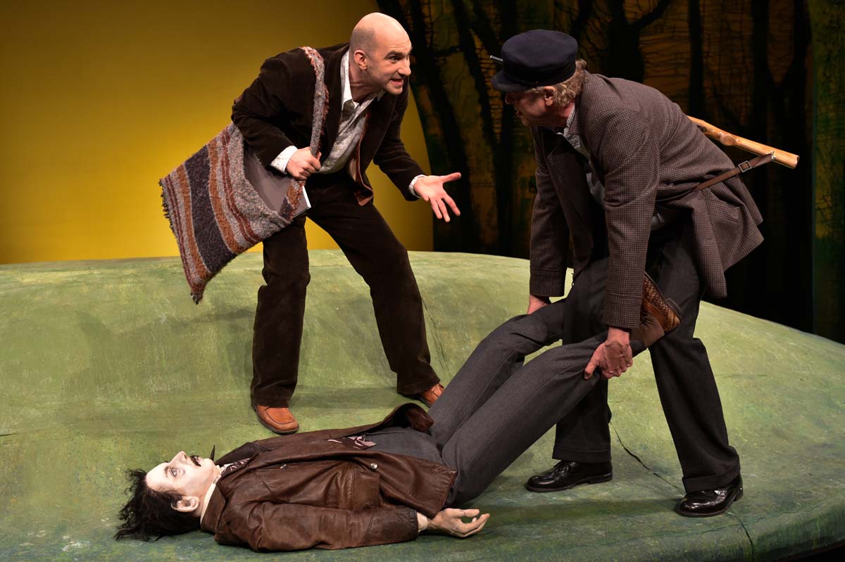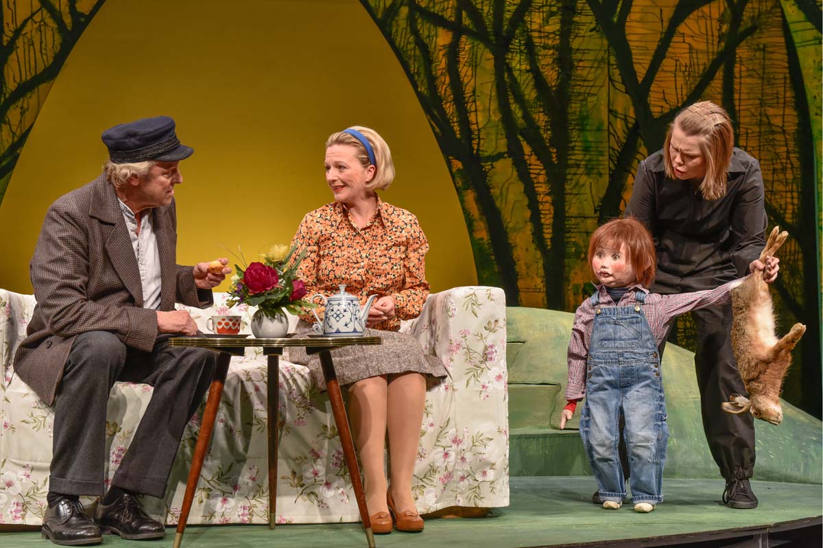 Jack Trevor Story (1917-1991) war ein britischer Schriftsteller, der vor allem in der Zeit von 1940 bis 1970 zahlreiche Romane, Erzählungen, Drehbücher für Fernsehserien und Zeitungskolumnen verfasste. Sein erfolgreichster Roman war The Trouble with Harry, der 1955 von Alfred Hitchcock verfilmt wurde. Der in Deutschland unter dem Titel Immer Ärger mit Harry veröffentlichte Film ist eine der wenigen Komödien des „Masters of Suspense“ und zeichnet sich durch Hitchcocks typischen schwarzen Humor aus. An der Badischen Landesbühne ist der Stoff das erste Mal auf einer Theaterbühne zu sehen. Intendant Carsten Ramm und Chefdramaturgin Larissa Benszuweit erstellten die humorvolle Bühnenfassung auf Basis von Jack Trevor Storys Roman. Eine Besonderheit der Inszenierung von Carsten Ramm ist das Puppenspiel unter der Anleitung von Detlef Heinichen: Der vierjährige Junge Abie wird von Schauspielerin Jessica Schultheis mit einer lebensgroßen Puppe gespielt. Heinichen zeigte sich in der Spielzeit 2015.2016 bereits für das Puppenspiel in William Shakespeares Hamlet verantwortlich.