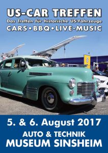 (zg) Am ersten Augustwochenende und erstmals an zwei Tagen wird das AUTO & TECHNIK MUSEUM SINSHEIM zum Mekka aller US-Car Freunde. Beim beliebten US-Car Treffen können historische und außergewöhnliche US-Fahrzeuge aller Art bestaunt werden. Neben einem sehr großen Bereich für historische US-Fahrzeuge bis Baujahr 1987 gibt es eine Sonderfläche für außergewöhnliche US-Rat-Cars und Sonderumbauten. Somit reicht die Bandbreite nicht nur vom legendären Ford T-Modell bis hin zu den legendären Pink Cadillacs, sondern geht noch weit darüber hinaus. Eine Händlermeile, zahlreiche Gastronomieangebote u.a. American BBQ und natürlich coole Live-Bands sorgen dafür, dass es an diesem Wochenende garantiert nicht langweilig werden wird! Das US-Car Treffen findet am Samstag, 5. August 2017 von 9 bis 21.00 Uhr und am Sonntag, 6. August 2017 von 9 bis 18 Uhr statt. Der Eintritt auf das Freigelände des AUTO & TECHNIK MUSEUM SINSHEIM (und somit zum US-Car Treffen) ist frei!US-Car Treffen
