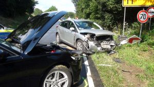 Helmstadt/Rhein-Neckar-Kreis (ots) – Vier Verletzte und Sachschaden von ca. 60.000.- Euro sind die Folge eines Verkehrsunfalls, der sich am Freitag auf der B 292 bei Helmstadt ereignete. Gegen 15.35 Uhr war ein 80-jähriger Pkw-Fahrer in Richtung Waibstadt unterwegs, als er in einer Rechtskurve nach links auf die Gegenfahrbahn kam. Hierdurch beschädigte er insgesamt drei ihm entgegenkommende Fahrzeuge. Zunächst streifte er einen Peugeot und einen unmittelbar dahinter folgenden Skoda und stieß anschließend frontal mit einem Audi zusammen. Die entgegenkommenden Fahrzeuge hatten allesamt noch versucht auszuweichen, konnten die Kollision jedoch nicht mehr verhindern. Der Unfallverursacher wurde mittels Rettungshubschrauber in ein Krankenhaus gebracht. Lebensgefahr besteht nicht. Seine 79-Jährige Mitfahrerin und der 79-jährige Skoda-Fahrer wurden ebenfalls stationär in umliegenden Krankenhäusern aufgenommen. Der 53-jährige Audi-Fahrer wurde leicht verletzt und wollte bei Bedarf selbständig ärztliche Hilfe in Anspruch nehmen. Alle Fahrzeuge waren nicht mehr fahrbereit und mussten abgeschleppt werden. Während der Unfallaufnahme war die B 292 bis ca. 19.00 Uhr voll gesperrt. Eine örtliche Umleitung war eingerichtet.