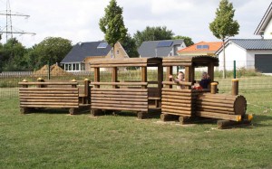 Die große Holzeisenbahn wurde umgestellt, das Kinderhaus wurde neu gestrichen und der Garten konnte vom Unkraut an den Rändern befreit werden.