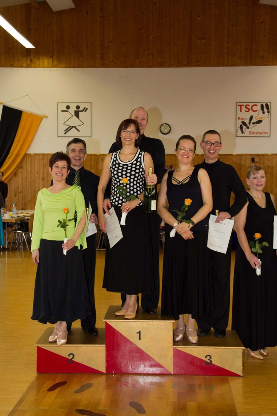 Bei den „Sinsheimer Tanzsporttagen“ verbuchten die clubeigenen Paare folgende Erfolge: In der Einsteiger-Leistungsklasse, der D-Klasse, der Senioren II ( Alter ab 45 Jahren ) durften Ildico und Ulf Barth das höchste Treppchen besteigen und freuten sich über Ihren ersten 1. Platz. Ehepaar Claudia und Reinholf Jablonka nahmen an der Senioren II B-Klasse teil. Dagmar Krüger und Thomas Lange sowie das Ehepaar Katrin und Herbert Lederer starteten in Senioren II A-Klasse ( der zweithöchsten Leistungsklasse ) . Tanzpaar Lederer erreichte das Finale und belegte den 5. Platz, Krüger/ Lange wurde Anschlusspaar mit dem 7. Platz. Edi und Hermann Miltner konnten nach längerer krankheitsbedingter Pause in der Senioren IV ( Altersklasse ab 60 Jahren), S-Klasse ( der höchsten Amateurklasse ) wieder am Turniergeschehen teilnehmen. Petra-Alexandra Lessmann und Alexander Hick konnten in der jüngeren Altersklasse , Senioren II S-Klasse , sowie in Ihrer Altersklasse , Senioren III S-Klasse ( Alter ab 50 Jahren ) den Sieg erringen.