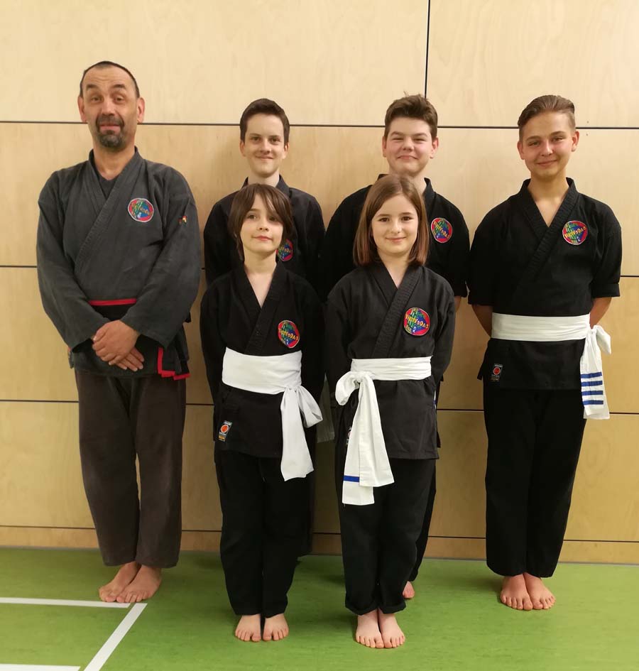 Am Samstag den 06.04.2019 konnte Trainer Peter , Linus Schleidt, Lara Jakobs, Oliver Demling und Mario Bolloni die freudige Nachricht von der bestandenen Prüfung mitteilen. Alle bekamen ihren blauen Capstreifen und ihre Urkunde in einer feierlichen Zeremonie überreicht. Unter dem Applaus ihrer Mitschüler nahmen alle ihre Auszeichnung entgegen.