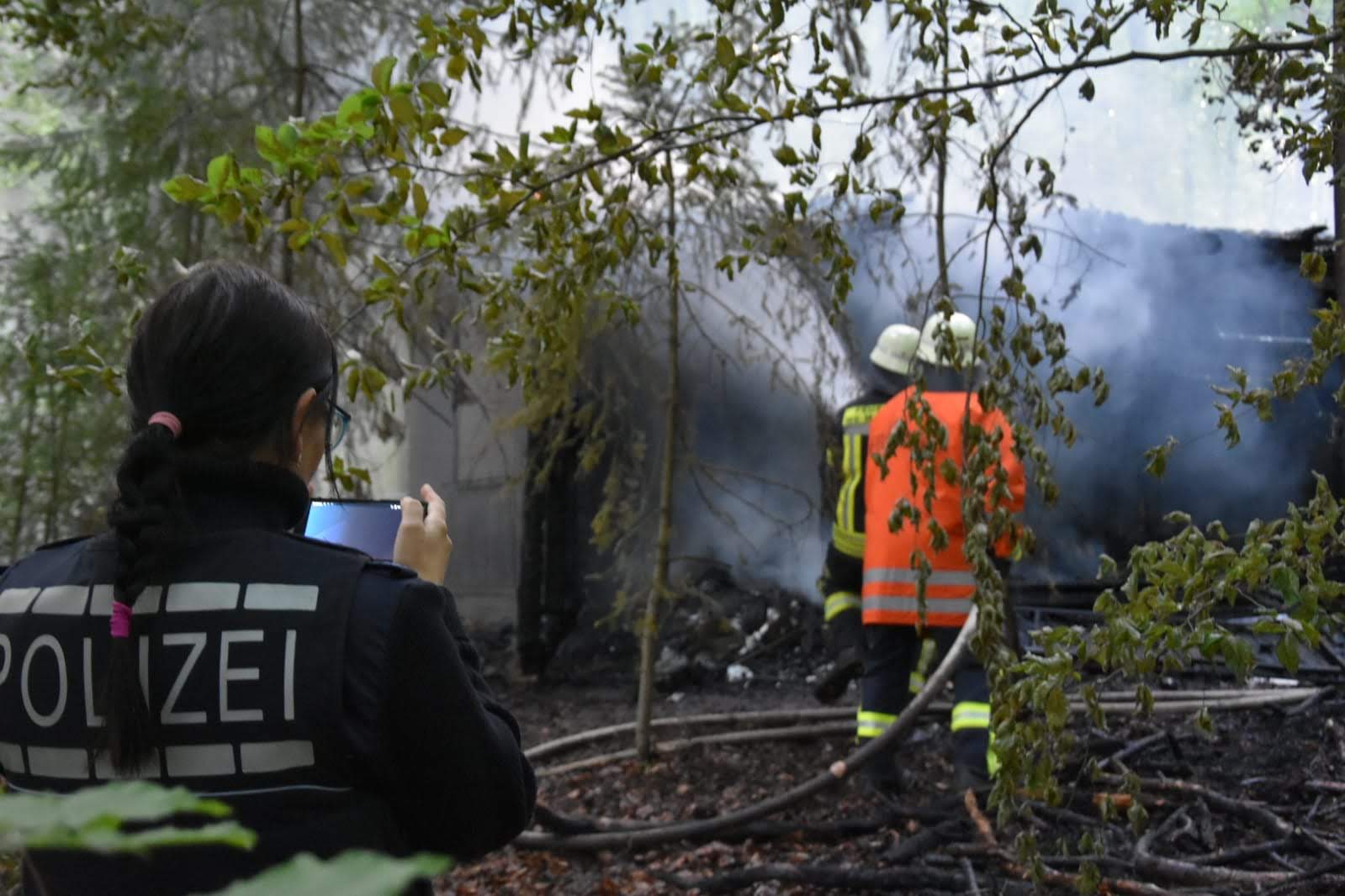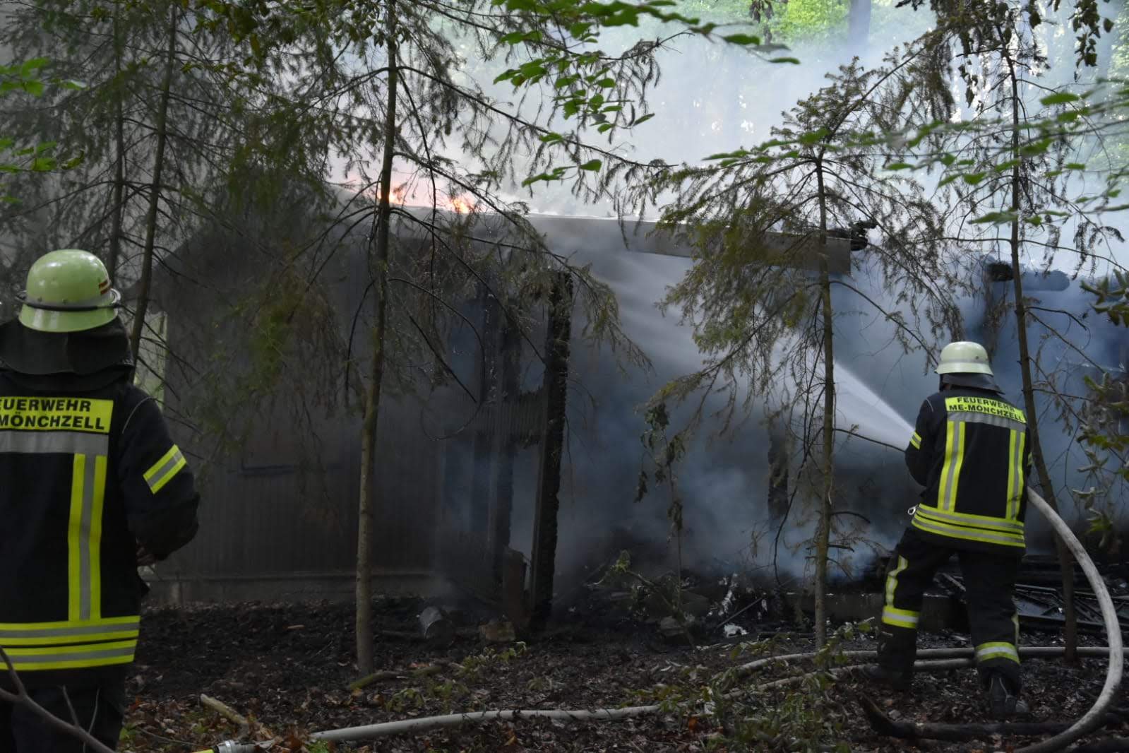 Meckesheim/Mönchzell. (pol)Eine Spaziergängerin meldete am Dienstagabend gegen 19.00 Uhr bei der Rettungsleitstelle den Brand der Jagdhütte im Neckargemünder Weg in Mönchzell. Beim Eintreffen der Einsatzkräfte stand die Jagdhütte bereits in Vollbrand. Die Feuerwehren Meckesheim, Mönchzell, Mauer und Wiesloch waren mit insgesamt 10 Fahrzeugen und 47 Einsatzkräften vor Ort, konnten jedoch die Jagdhütte nicht mehr retten, diese brannte vollständig aus. Die Brandursache ist derzeit noch unklar. Es entstand ein Sachschaden von ca. 50.000 EUR. Durch die Spaziergängerin konnte kurz zuvor ein blauer Audi gesehen werden, welcher von der Örtlichkeit weg fuhr. Das Fahrzeug wäre mit 3-4 männlichen Personen besetzt gewesen. Ob die Personen etwas mit dem Brand zu tun haben ist derzeit noch unklar. Die Kriminalpolizei hat die Ermittlungen übernommen. Sachdienliche Hinweise bitte an den Kriminaldauerdienst unter 0621/174-4444.