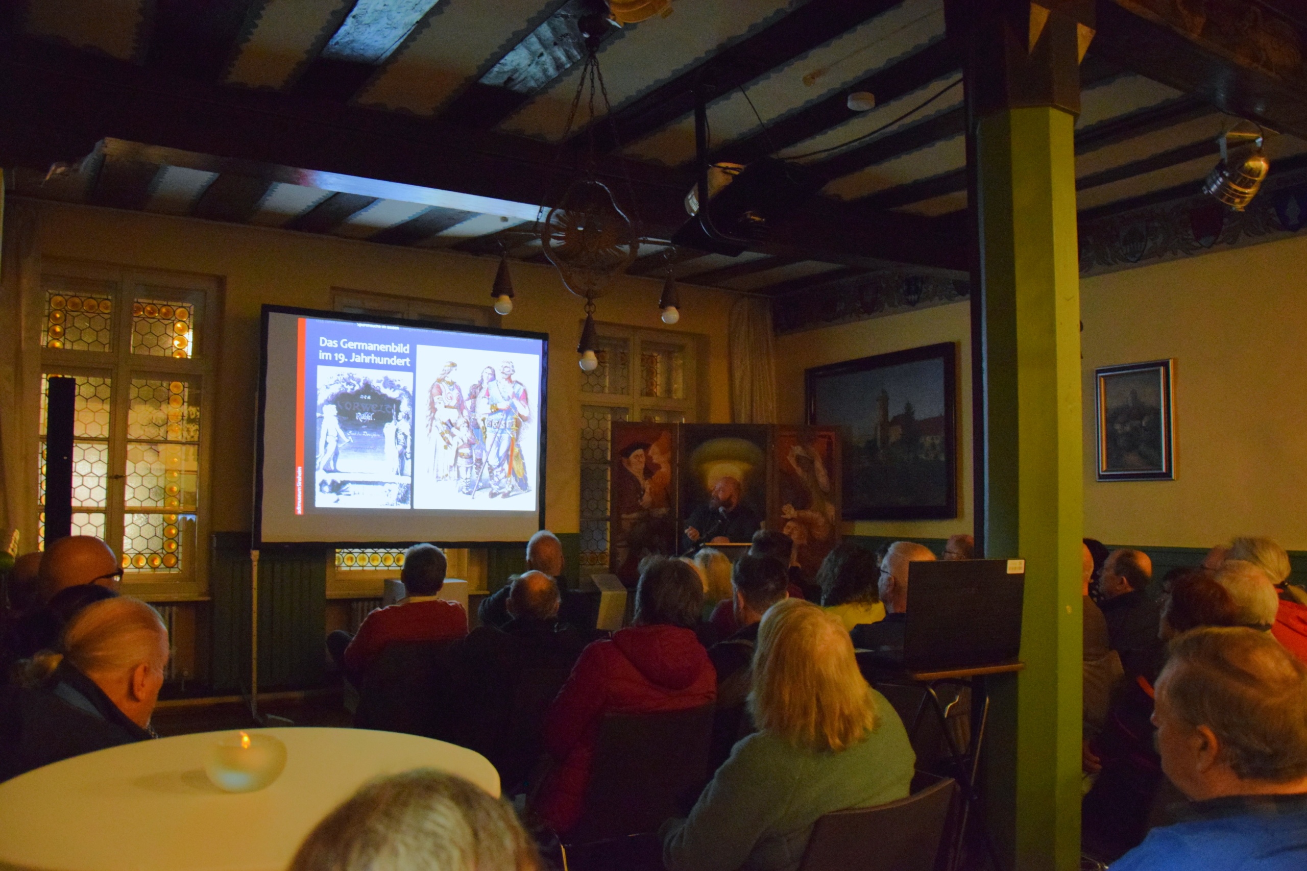 Das romantisch verklärte Germanenbild jener Zeit wirke noch bis heute nach, berichtete Miericke. Malerisch, aber vorsichtig rekonstruierte er in seinem Vortrag die Besiedlung des nördlichen Kraichgaus von der Steinzeit bis ins frühe Mittelalter, als Sinsheim das erste Mal genannt wird.