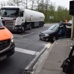 Bei der Kollision beider Fahrzeuge wurde die Autofahrerin in ihrem Fahrzeug eingeklemmt und musste von Rettungskräften der regionalen Feuerwehren befreit werden. Mit schweren Verletzungen kam die Frau nach ihrer notärztlichen Behandlung mit einem Rettungswagen in eine Klinik. Ihr Fahrzeug wurde abgeschleppt.