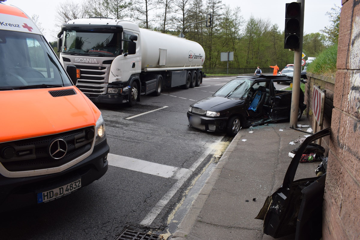 Gegen 7.45 Uhr war eine Autofahrerin auf der L 549 von Neckarbischofsheim kommend in Richtung Waibstadt-Bernau unterwegs. Als auf die B 292 in Richtung Helmstadt abbiegen wollte, übersah sie dabei einem 40 Tonnen schweren, voll beladenen Tanklastzug, der auf der B 292 aus Richtung Sinsheim ebenfalls Richtung Helmstadt fuhr.