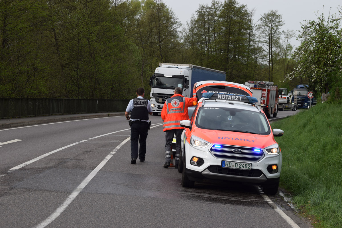 Waibstadt. (pol) Wegen eines schweren Verkehrsunfalls am Dienstagvormittag war die B 292, am Abzweig in Richtung Neckarbischofsheim zeitweise voll gesperrt.