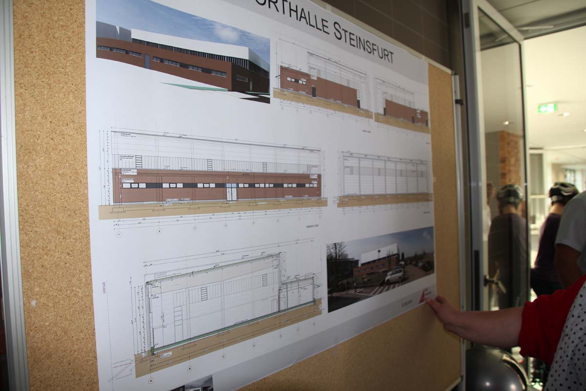 (zg) Ein halbes Jahr später als ursprünglich geplant konnte nun der symbolische Spatenstich für die neue Sporthalle in Steinsfurt erfolgen: Oberbürgermeister Jörg Albrecht, die Dezernenten Tobias Schutz und Ulrich Landwehr, Ortsvorsteher Rüdiger Pyck, Vertreter des Planungsbüros Töniges, des Bauunternehmens Zapf Gewerbebau und der Firma Hauck freuten sich auf dem Gelände an der jetzigen Turnhalle auf den Beginn der Bauarbeiten für die neue Schulsporthalle mit großer Sport- & Trainingshalle.