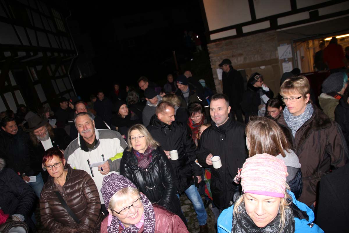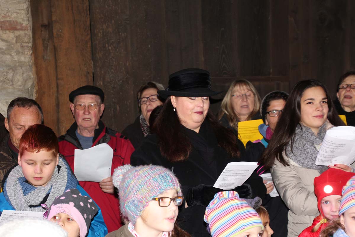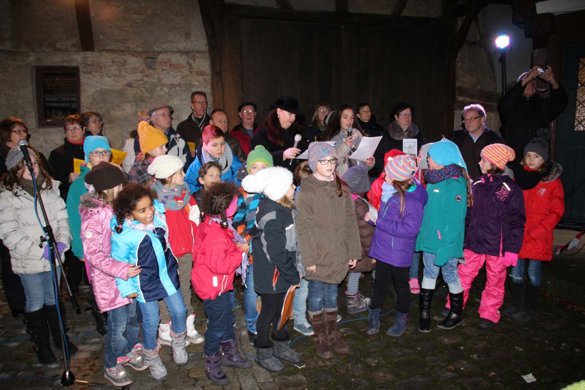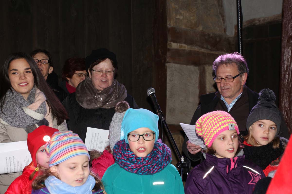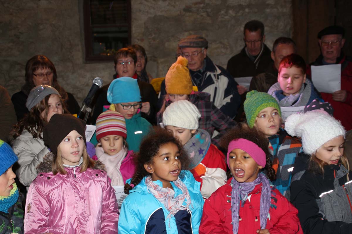 IMG_5638(cr) Ein kleiner aber besonderer Event in jedem Jahr ist das Steinsfurter Adventssingen im Lerchennest das in diesem Jahr zum siebten Male stattfand. Auch wenn in diesem Jahr die Giebelspatzen der Schule am Giebel und die Sängerinnen und Sänger des MGV Germania aus Krankheitsgründen etwas dezimiert waren und auf ihre angestammten Chorleiter verzichten mussten, so glänzten sie mit ihrem kurzen Programm und begeisterten die vielen Besucher, trotz der Weihnachtsmarktkonkurrenz in Sinsheim und Weiler, im historischen Lerchennest. Auch die kleinen Geschenke der Schülermitverwaltung kamen wieder gut an. Danke für diese kleine beachtenswerte Veranstaltung in Steinsfurt.