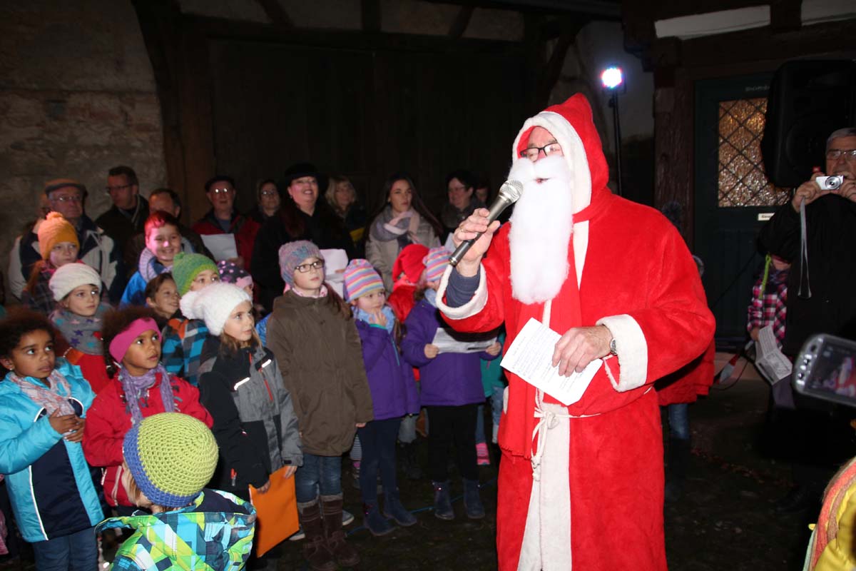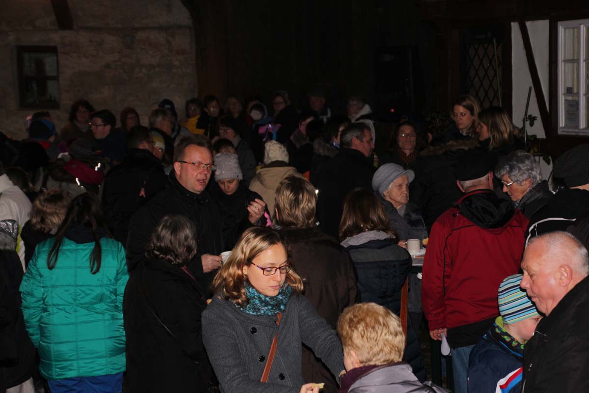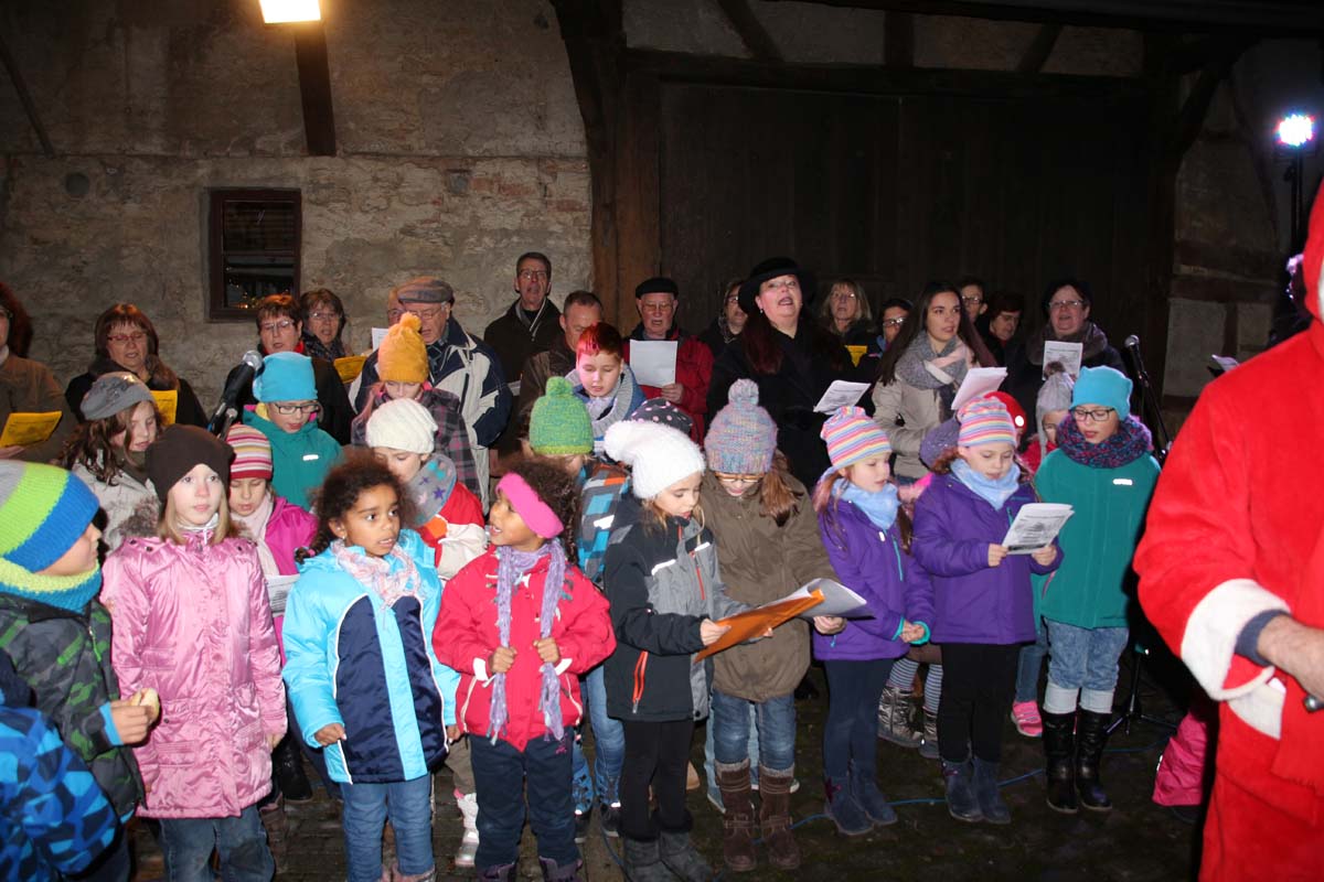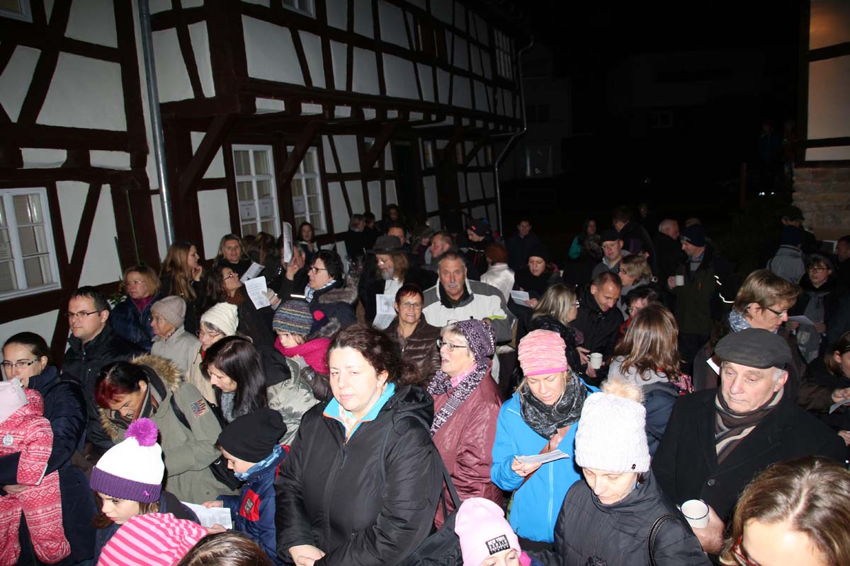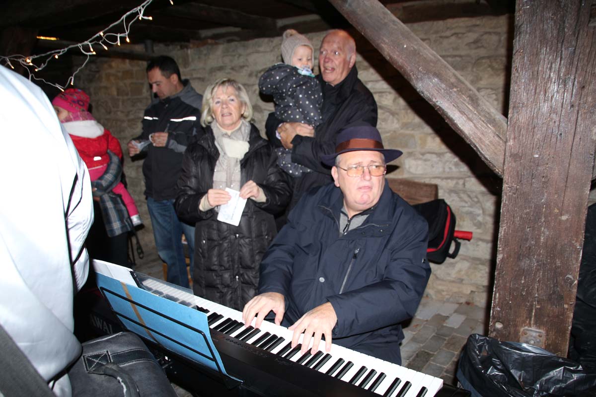 IMG_5638(cr) Ein kleiner aber besonderer Event in jedem Jahr ist das Steinsfurter Adventssingen im Lerchennest das in diesem Jahr zum siebten Male stattfand. Auch wenn in diesem Jahr die Giebelspatzen der Schule am Giebel und die Sängerinnen und Sänger des MGV Germania aus Krankheitsgründen etwas dezimiert waren und auf ihre angestammten Chorleiter verzichten mussten, so glänzten sie mit ihrem kurzen Programm und begeisterten die vielen Besucher, trotz der Weihnachtsmarktkonkurrenz in Sinsheim und Weiler, im historischen Lerchennest. Auch die kleinen Geschenke der Schülermitverwaltung kamen wieder gut an. Danke für diese kleine beachtenswerte Veranstaltung in Steinsfurt.