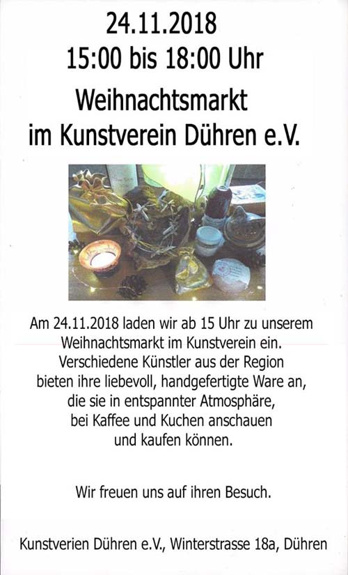 Gemütlicher Weihnachtsmarkt im Kunstverein Dühren
