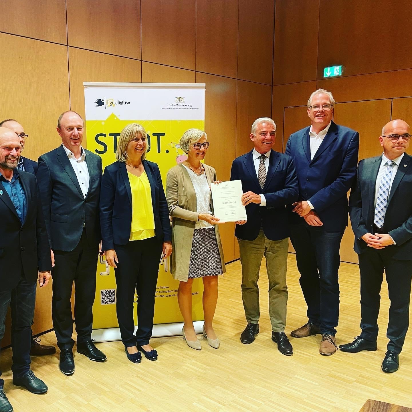 Die Gemeinden Schönbrunn, Heiligkreuzsteinach und Lobbach konnten sich freuen. Sie gehörten zu den vom Land ausgewählten Kommunen, die gestern ihre Zuwendungsbescheide im Rahmen der kommunalen Breitbandförderung im Innenministerium in Stuttgart entgegennehmen konnten.