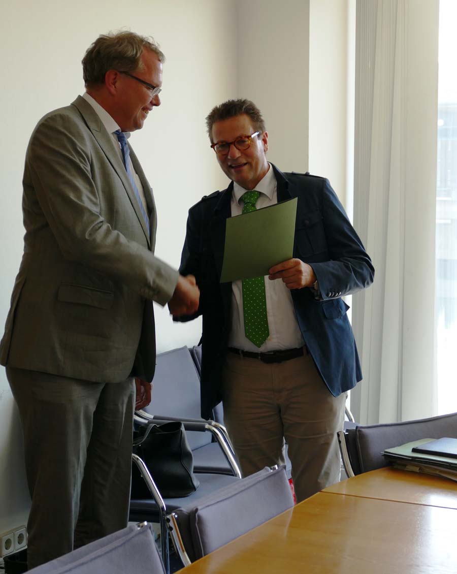 Am Rande der heutigen Fraktionssitzung im Stuttgarter Landtag hat Dr. Albrecht Schütte MdL den Förderbescheid für die kommunale Maßnahme persönlich vom Minister Peter Hauk MdL erhalten.