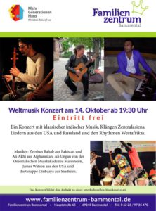 Musiker: Zeeshan Rahab aus Pakistan und Ali Akhi aus Afghanistan, Ali Ungan von der Orientalischen Musikakademie Mannheim,