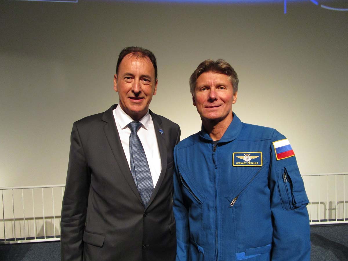 (zg) Der Kosmonaut Gennadi Padalka hielt als Gast im Technik Museum in Speyer am Rhein einen Vortrag. Der Russe war bereits der 35. Kosmonaut, der das Technik Museum in Speyer besuchte. Der 58 Jährige ist Rekordhalter im Weltall, sein Aufenthalt im All beträgt bis jetzt 878 Tage 11 Stunden und 29 Minuten. Bei den Außeneinsätzen war er 38 Stunden und 37 Minuten im Einsatz. Padalka zeigte bei seinem Vortrag Fotos sowie Videos von den bisherigen fünf Langzeitmissionen von 1998 bis 2015 im Weltall und erklärte den Tagesablauf. Nach dem informativen Vortrag gab es eine Autogrammstunde in der Raumfahrthalle vor dem russischen Buran Spaceshuttle. Im übernächsten Jahr wird Gennadi Padalka im September 2018 auf die Internationale Raumstation (ISS) zurückkehren und trifft dann auf den deutschen ESA-Astronauten Alexander Gerst, der als „Astro-Alex“ bei seiner letzten Mission auf der ISS für tolle Bilder sorgte.