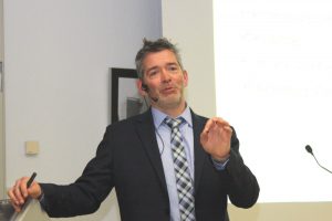 Zu Beginn seines Vortrags erklärte Dr. Voegele zunächst, dass die Prostata aus Drüsen-, Muskel- und Fettzellen besteht und am Blasenausgang zwischen Enddarm und Blase liegt. Die Harnröhre wird von der Prostata umschlossen. „Sie müssen sich das Organ vorstellen wie eine Mandarine“, erklärte der Facharzt für Urologie anschaulich, „das Fruchtfleisch ist wie das Gewebe, aus dem die Prostata besteht, und in der Mitte, wo sich die weißen Fäden der Frucht sammeln, liegt die Harnröhre. Außen herum ist die Kapsel der Prostata – in Analogie zur Schale der Mandarine.“ Die Prostata produziert ein Sekret, das für die Beweglichkeit der Spermien sorgt und daher für die Fortpflanzung unabdingbar ist. Nach Beendigung der reproduktiven Phase – wenn der Mann keine Kinder mehr zeugt – hat sie eigentlich keine Funktion mehr. „Anatomisch gesehen ist die Prostata dann ein höchst überflüssiges Organ“, bemerkte Dr. Voegele.