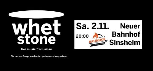 Am Eröffnungswochenende des Restaurants „Neuer Bahnhof“ ist am Samstag, den 2.11. die Band „Whetstone“ zu hören.