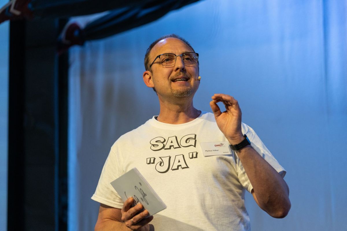 Theologe Markus Völker betonte in seiner Ansprache: „Jesus Christus sagt bedingungslos ja zu dir – trotz der Sünde.“ Das gelte für jeden einzelnen Menschen: „Weil Gott uns geschaffen hat, weil er uns liebt, sich nach Gemeinschaft mit uns sehnt und weil er die Ewigkeit mit uns feiern will“, so der Missionar, der eine globale theologische Fernschularbeit leitet. „Wir freuen uns über jeden Menschen weltweit, der ja zu Jesus sagt.“
