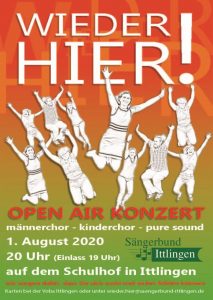 Getragen von den Chorgruppen Kinder- und Jugendchor, Männerchor und PureSound wollen wir am Samstag, den 1. August unseren treuen Freunden und Fans aus Ittlingen und der Region einen schönen musikalischen Sommerabend bieten, nach den schwierigen Zeiten von Kontaktbeschränkungen und Veranstaltungsverboten.