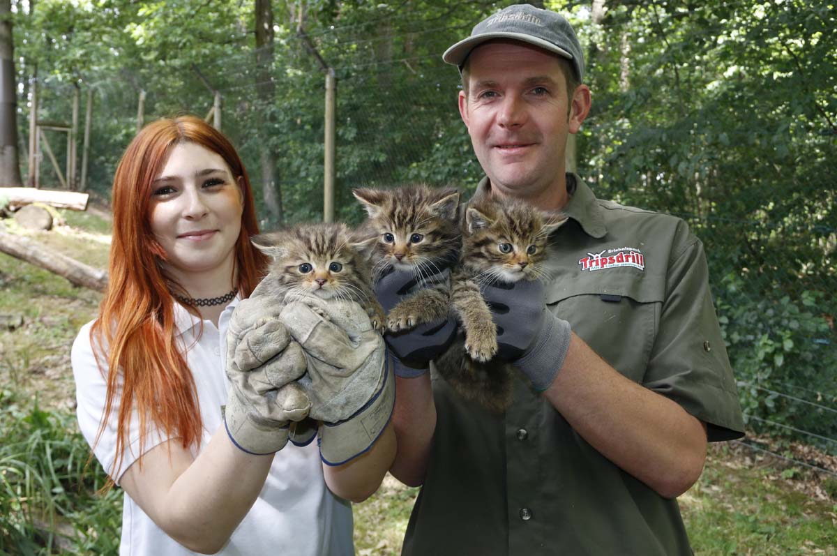 (zg) Wildparadies Tripsdrill, Cleebronn: Auch dieses Jahr gibt es wieder reichlich Tiernachwuchs im Wildparadies Tripsdrill zwischen Heilbronn und Stuttgart. Zu den Publikumslieblingen gehören die drei Wildkatzen-Babys, die zusammen mit ihren Eltern und ihren großen Geschwistern durch das Gehege tollen.