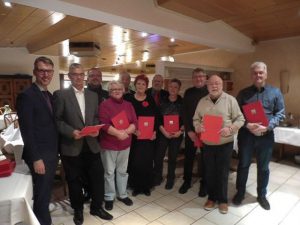 (zg) Am Sonntag veranstaltete der SPD Stadtverband Sinsheim / Angelbachtal seine Winterfeier. Nach Kaffee und Kuchen ergriff der Stadtverbandsvorsitzende  Michael Kaestel das Wort. Er begrüßte die zahlreich erschienen Genossen. Ganz besonders begrüßte er den Kreisvorsitzenden Thomas Funk und den Bundestagsabgeordneten für den Wahlkreis Rhein-Neckar, Lars Castellucci. Kaestel ließ ein ereignisreiches Jahr noch einmal Revue passieren. Er bedankte sich bei allen die insbesondere bei der Kommunalwahl aktiv waren. Er ging auf die verschiedenen weiteren Wahlen und die Wahl der Vorsitzenden ein. Von dieser Wahl und den anschließenden Parteitagsbeschlüssen gehe eine Aufbruchstimmung aus. So soll Hartz IV durch ein Grundeinkommen ersetzt werden. Die vielen guten Beschlüsse der Partei müssen aber auch vor Ort für die Menschen nachvollziehbar in Politik münden. So darf es z.B. nicht sein, dass der Erhöhung der Grundsteuer B zugestimmt wird, weil sie auf die Mieten umgelegt wird und damit die Mieten weiter erhöhe. Die Vorsitzende Saskia Esken habe deutlich gemacht, dass es Ziel sein muss, dass ein Durchschnittsverdiener  maximal 30% für Miete ausgeben muss. Der Erhöhung von Kita – Gebühren muss laut und vernehmlich widersprochen werden, da dies der SPD Forderung nach Gebührenfreiheit entgegensteht. Abschließend hob  Kaestel die jungen Menschen hervor, die sich in der SPD engagieren wollen und dafür auch Raum bekommen müßten. Im Anschluss daran lobte der SPD-Bundestagsabgeordnete Lars Castellucci das Engagement der jungen Menschen im Stadtverband und kündigte an auch weiterhin Angebote wie die  Diskussionsrunde „Pizza & Politik“ für junge Menschen zu machen. Danach wurden viele Genossen für bis zu 50 Jahre Mitgliedschaft geehrt. Leider konnten aus gesundheitlichen Gründen nicht alle anwesend sein. Daran schloss sich das Abendessen und viele spannende Diskussionen an.