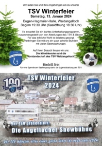Am Samstag, den 13. Januar 2024 findet die Winterfeier des TSV Waldangelloch in der Eugen-Hagmaier-Halle in Waldangelloch statt.