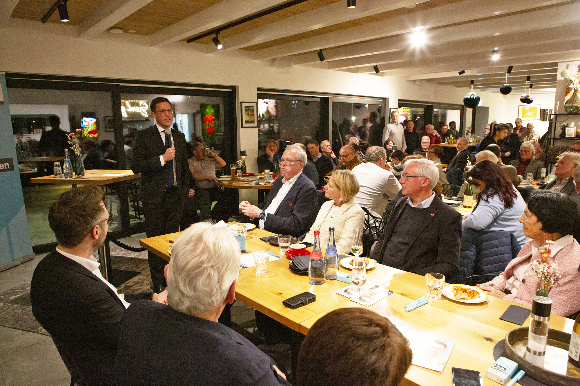 Wiesloch. Kämpferisch, entschlossen, sehr deutlich in der Ansage – beim Neujahrsempfang der CDU Rhein-Neckar am vergangenen Donnerstagabend (06. Februar) war eines deutlich zu spüren: Die Christdemokraten wollen die Wahl gewinnen, regieren und dann vor allen Dingen für einen echten Politikwechsel sorgen. Im bis auf den letzten Platz gefüllten Restaurant Sandgold herrschte eine energiegeladene Atmosphäre, die rund 100 Besucherinnen und Besucher erlebten hierbei kämpferische Reden des CDU-Kreisvorsitzenden Dr. Albrecht Schütte MdL, des CDU-Landeschefs Manuel Hagel und des Bundestagsabgeordneten Moritz Oppelt (Wahlkreis Rhein-Neckar).