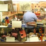 Marco Neumaier schloss die Ansprachen zur Vernissage mit einer kleinen Einführung in die historische Spielzeugwelt, in der es oft um vielfältige Themen ging. Puppenmütter sollten auf ihre spätere Rolle als Mutter und Hausfrau vorbereitet werden, während Zinnsoldaten und ein Schießbudenspiel vorm Ersten und Zweiten Weltkrieg Kriegsbegeisterung und Vaterlandstreue wecken sollten. Manche Objekte sind mehrfach in der Ausstellung, und das nicht ohne Grund. Sie spiegeln ihre jeweilige Zeit wieder, wie etwa ein Kaufladen um die Jahrhundertwende und ein Kaufladen aus den 1950er Jahren.