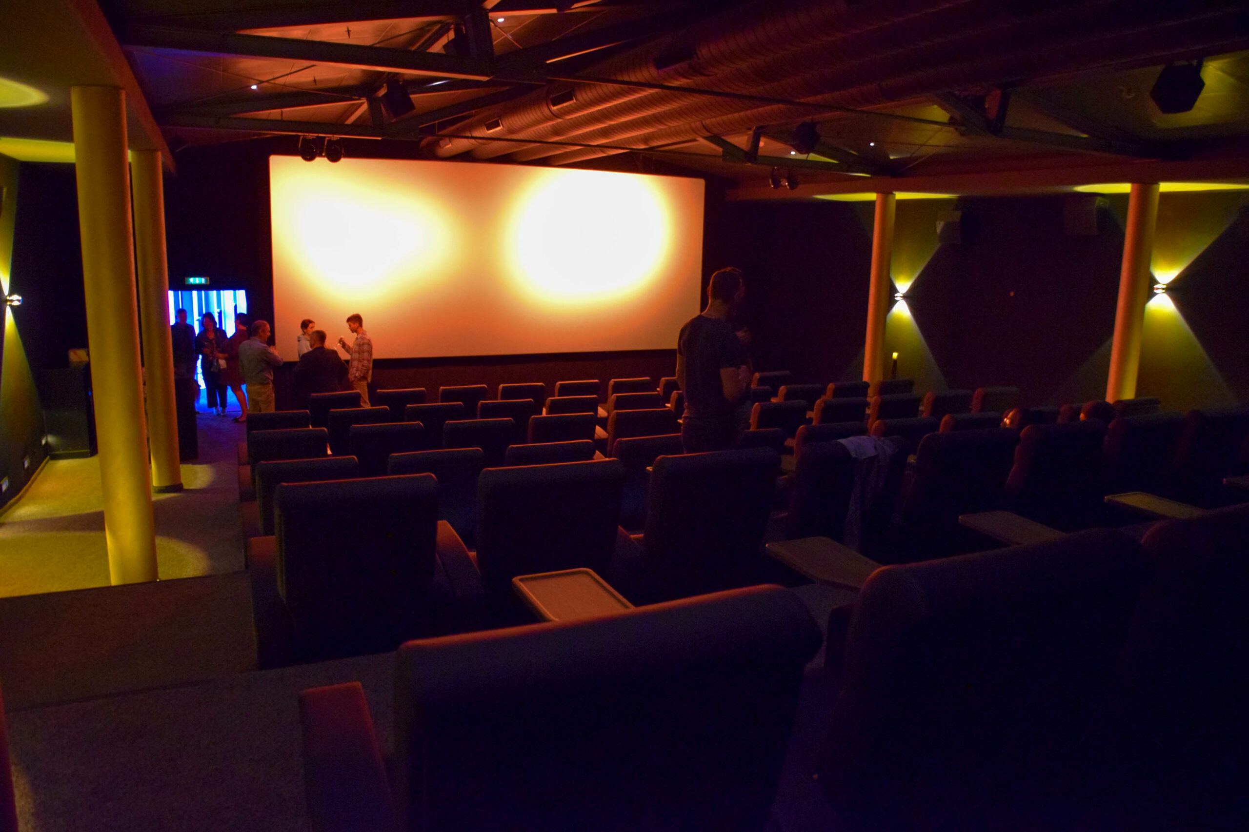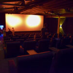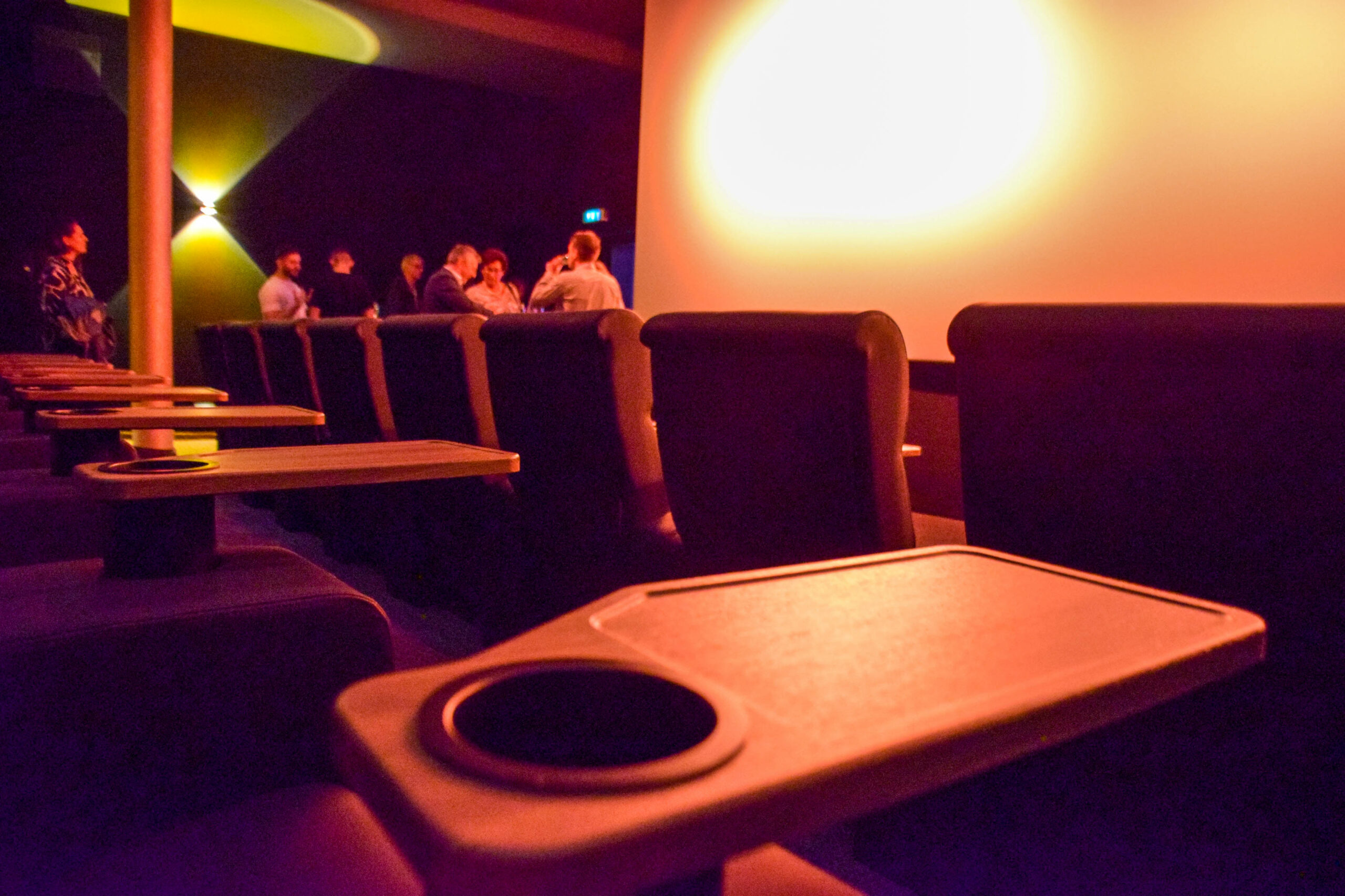 Geneigtes Sitzen plus Füße hochlegen. Ideale Bedingungen für lange Filmabende. Am Donnerstagabend wurde hier die 2,5-stündige Deutschlandpremiere des Sci-Fi/Abenteuers Dune präsentiert. Ein Machtkampf mit Sandwürmern auf 24qm Bildfläche. Die alte Leinwand hatte „nur“ 18 Quadratmeter. Neu ist auch eine 3D-Sound-Anlage. Bald soll noch ein Ultra-HD-Projektor eingebaut werden. Bestellt war der eigentlich schon vor einem Jahr – „die Computer Chip Krise ist auch in der Filmbranche ein Problem“, meint Krause der auf baldiges Eintreffen des Gerätes hofft. Jetzt schon vorhanden und nutzbar ist eine USB-Buchse an den Sitzen, womit man zum Beispiel sein Handy während der Vorstellung laden kann. Ein verstellbares Holzbrett vermittelt dazu noch exklusives Feeling wie im Flieger.