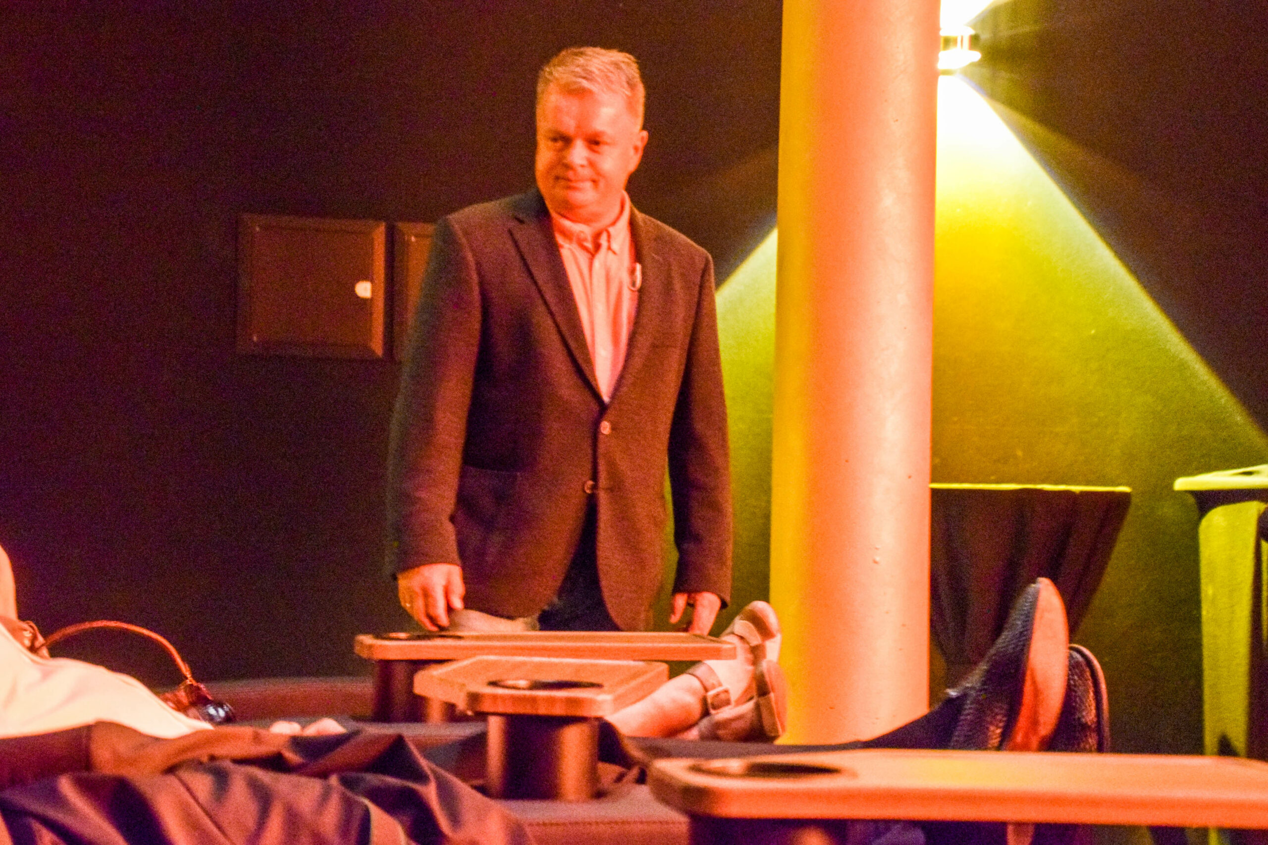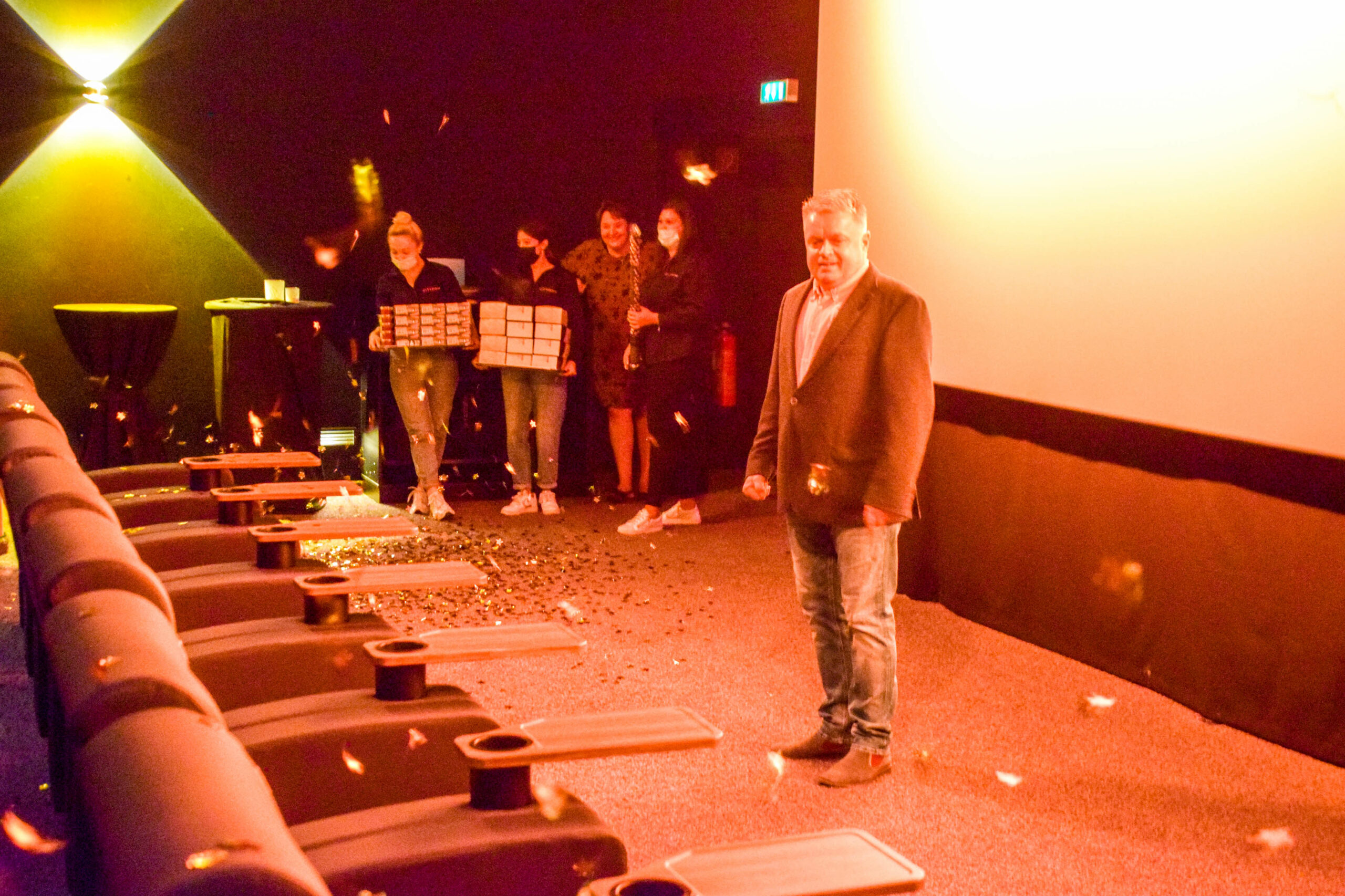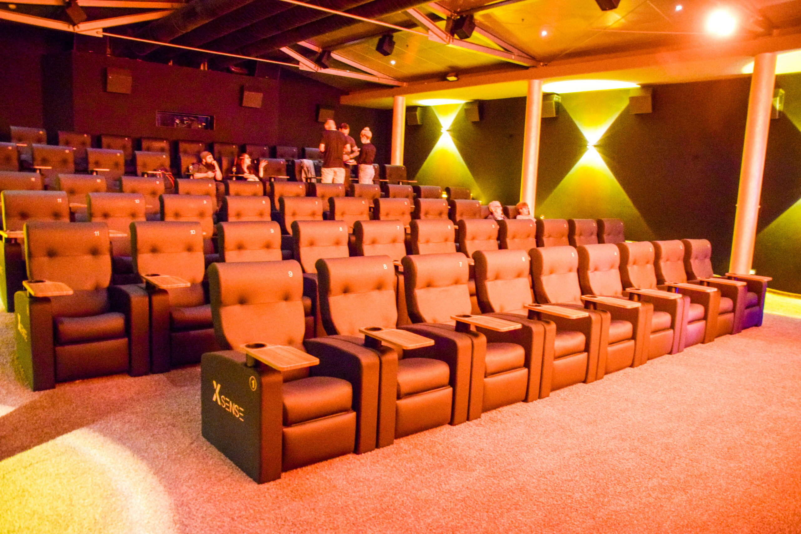 Sinsheim. (mr) Während der fast einjährigen Corona-Pause hat das Team des Sinsheimer „Citydom“ in der Wilhelmstraße einen ihrer Kinosäle in ein Luxuskino mit dem Namen „Xsense“ umgebaut. Der Saal im Dachgeschoss des Lichtspielhauses war zuvor ein „etwas in die Jahre gekommener Raum“, sagt Theaterleiter Frank Krause am Eröffnungsabend. Besonders an dem Raum ist die Exklusivität: Aus ehemals 150 Sitzen wurden 64 Sitze aus feinem Kunstleder. Einzigartig auch an den laut Krause exklusivsten Filmsesseln der Welt: Sie sind verstellbar. Von der sitzenden Position geht´s per Knopfdruck in die Liegeposition. „Abgefahren!“